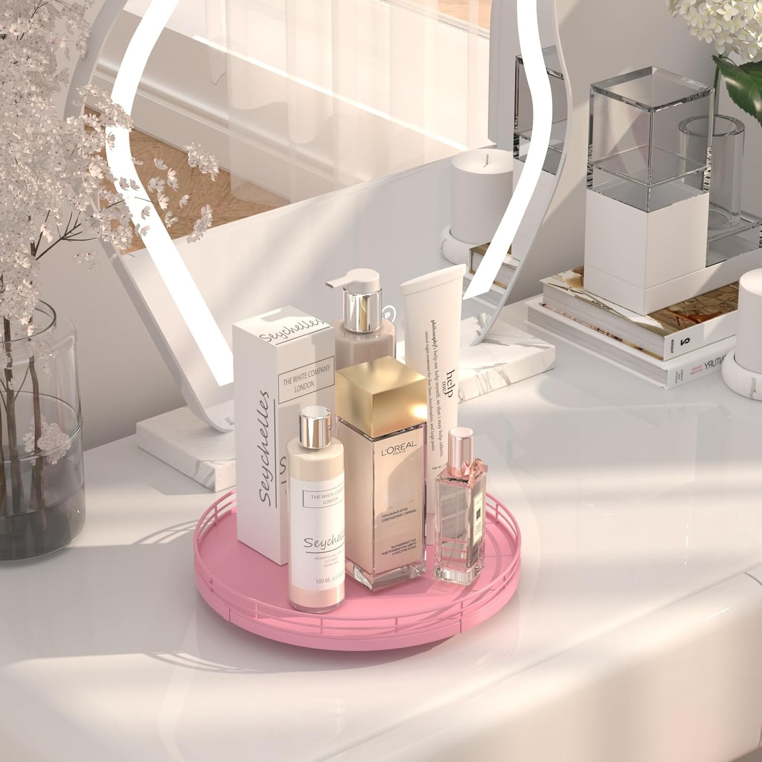 10" Oak Wood Bathroom Tray for Counter, Vanity Tray for Perfume Lotion Candle Makeup Jewelry Sink Soap Holder Turntable Dresser Organizer Countertop Coffee Table Decor Organization and Storage Pink