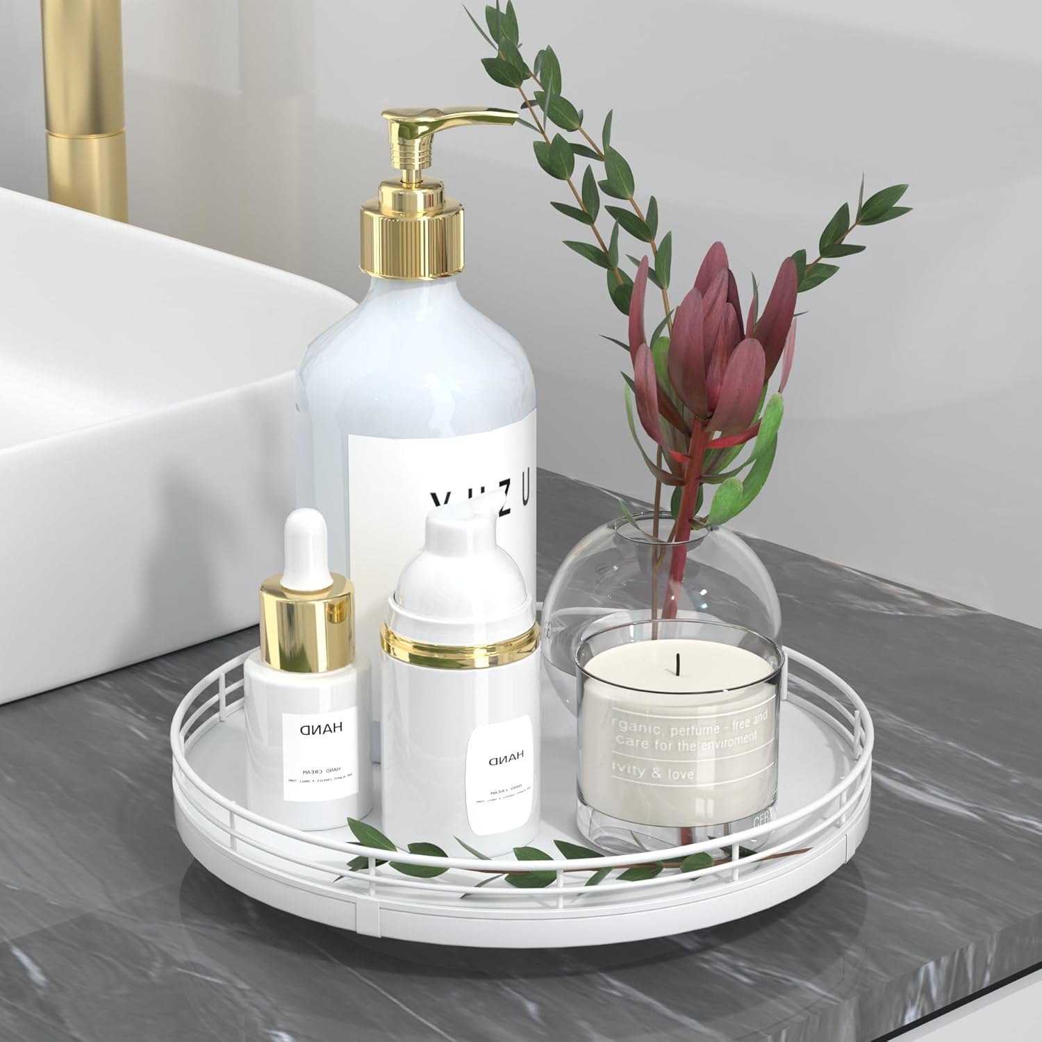 - ๐ ๐๐น๐๐ถ-๐ฃ๐๐ฟ๐ฝ๐ผ๐๐ฒ ๐จ๐๐ฎ๐ด๐ฒ: Perfect for a wide range of occasions and spaces. Whether used as a centerpiece table decorations, a vanity tray in your bathroom, or condiment organizer on your kitchen, this versatile round tray adapts to your needs in any room