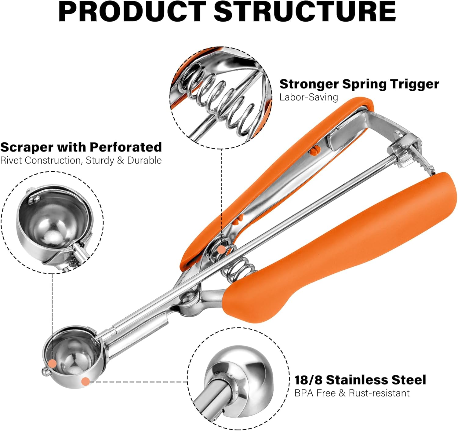 - 🍧【Our Ice Cream Scoop is Ready For All Your Daily Needs】 If you are planning to make delicious cookies, this small cookie scoop will fulfil your desire! It is also a great choice that can be used as an ice cream scoop, melon baller scoop, cupcake scoop, meatball scoop, or even as a measuring spoon. With this multifunctional scoop, let your meal prep work can be done efficiently. Ideal for use at home, restaurants, dessert shops and ice cream parlours.