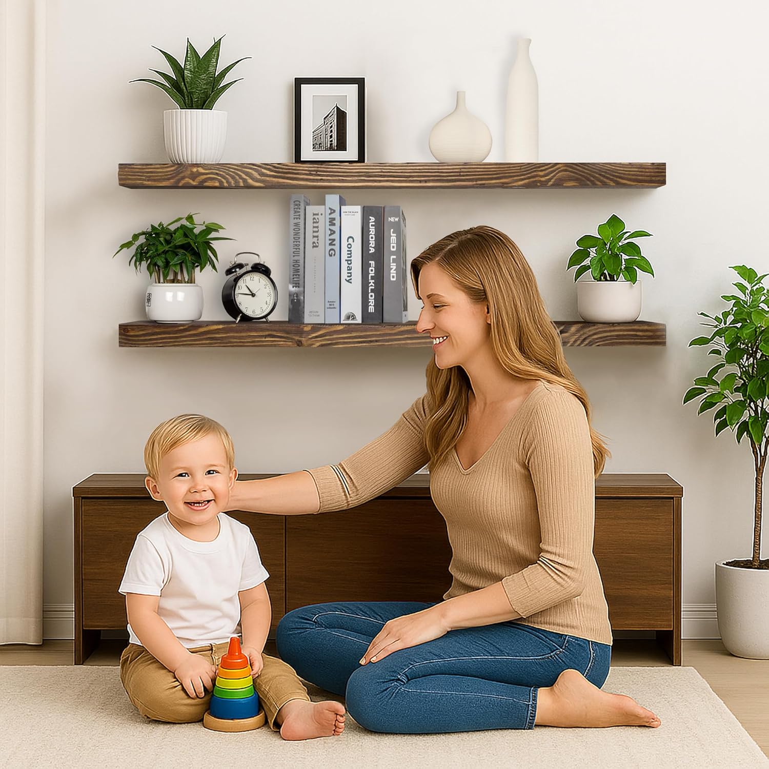 - Seamless Integration: The neutral finish of our floating shelf seamlessly integrates with a wide array of design aesthetics, making it an ideal addition to any home. Enhance your space with this functional piece that combines storage and style effortlessly.