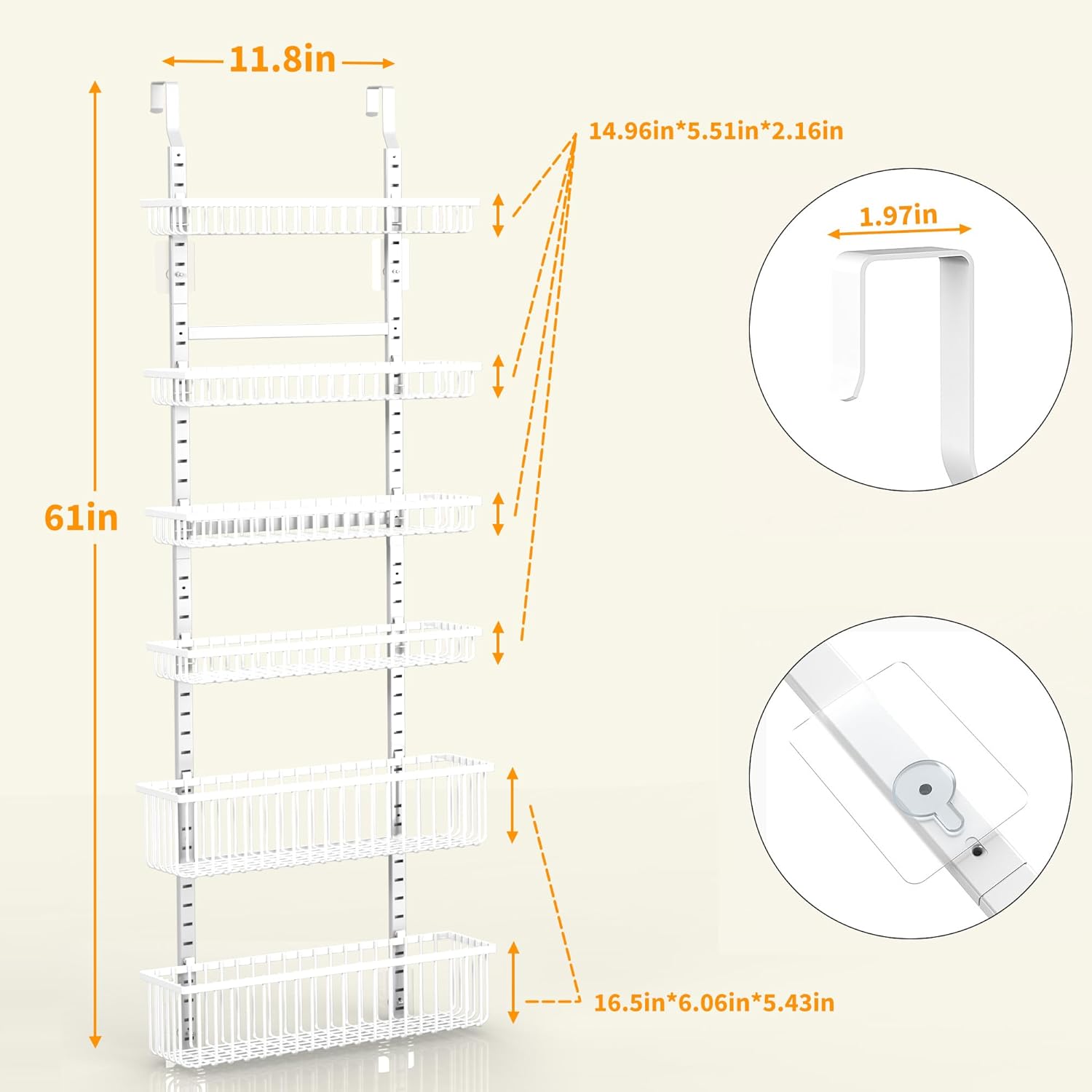 - Maximize Your Space: Our 6-Tier over the door pantry organizer is designed to make the most of your storage space, allowing you to store more items in a smaller area such as spice and some jars. Perfect for small kitchens or those with limited storage space.