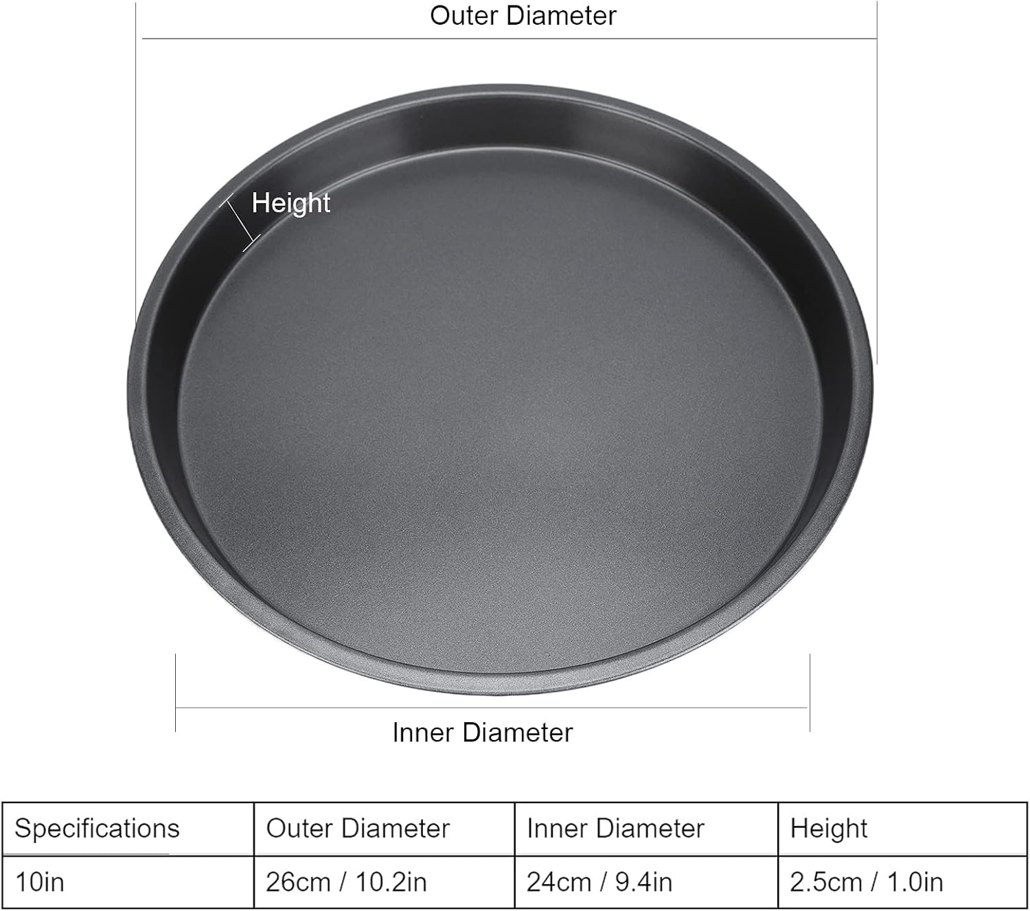 2Pcs Pizza Pan, 6in/9in/10in/12in Deep Dish Round Pizza Pan for Oven, Non Stick Thickened Carbon Steel Baking Pan for Home Kitchen, Dishwasher Safe(10in)