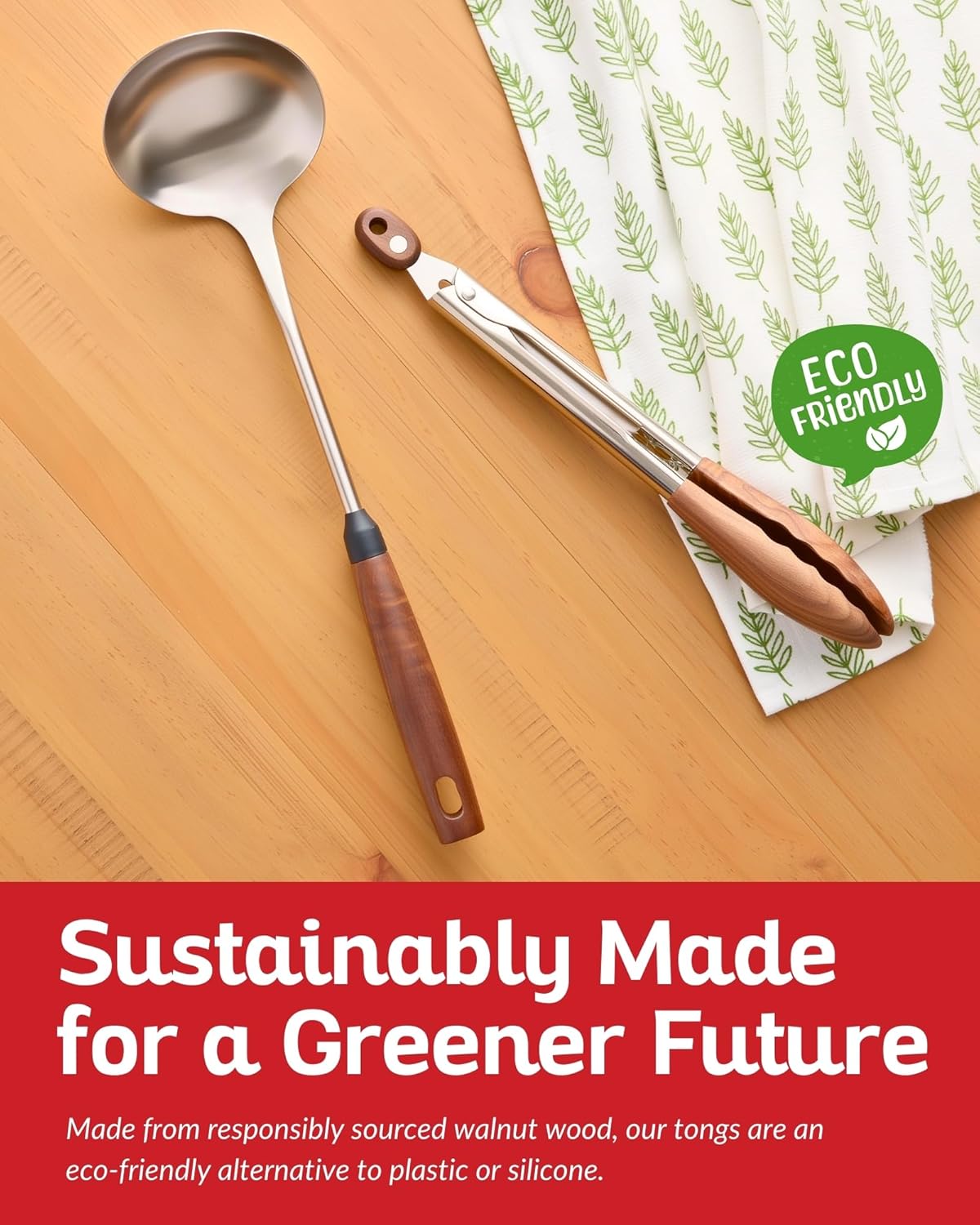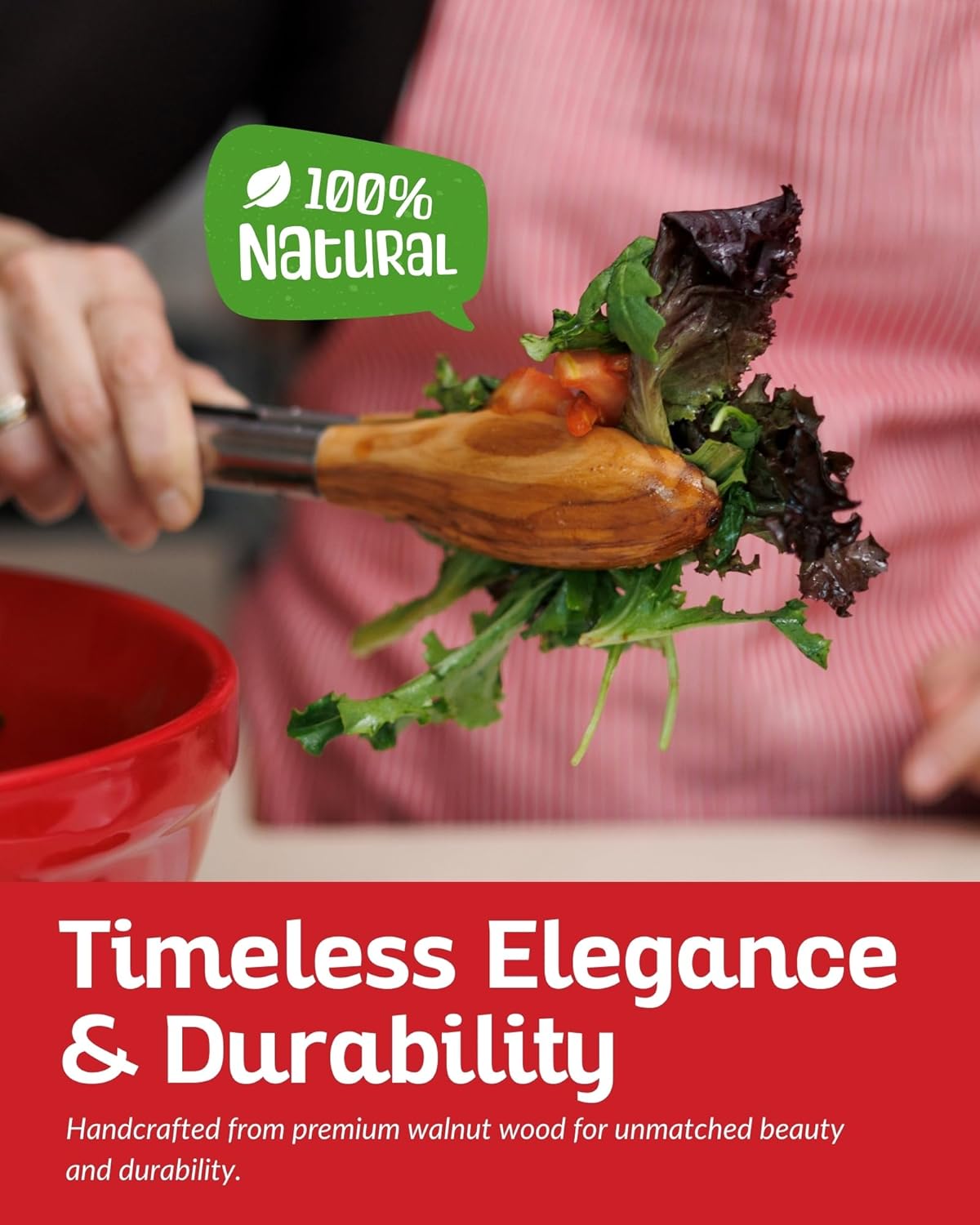 - NON-TOXIC NATURAL WALNUT WOOD: This wooden tong for cooking is expertly crafted from natural walnut wood, ensuring a non-toxic and safe experience. This serving tong is reinforced with stainless steel, offering the durability needed for all your cooking tong needs.