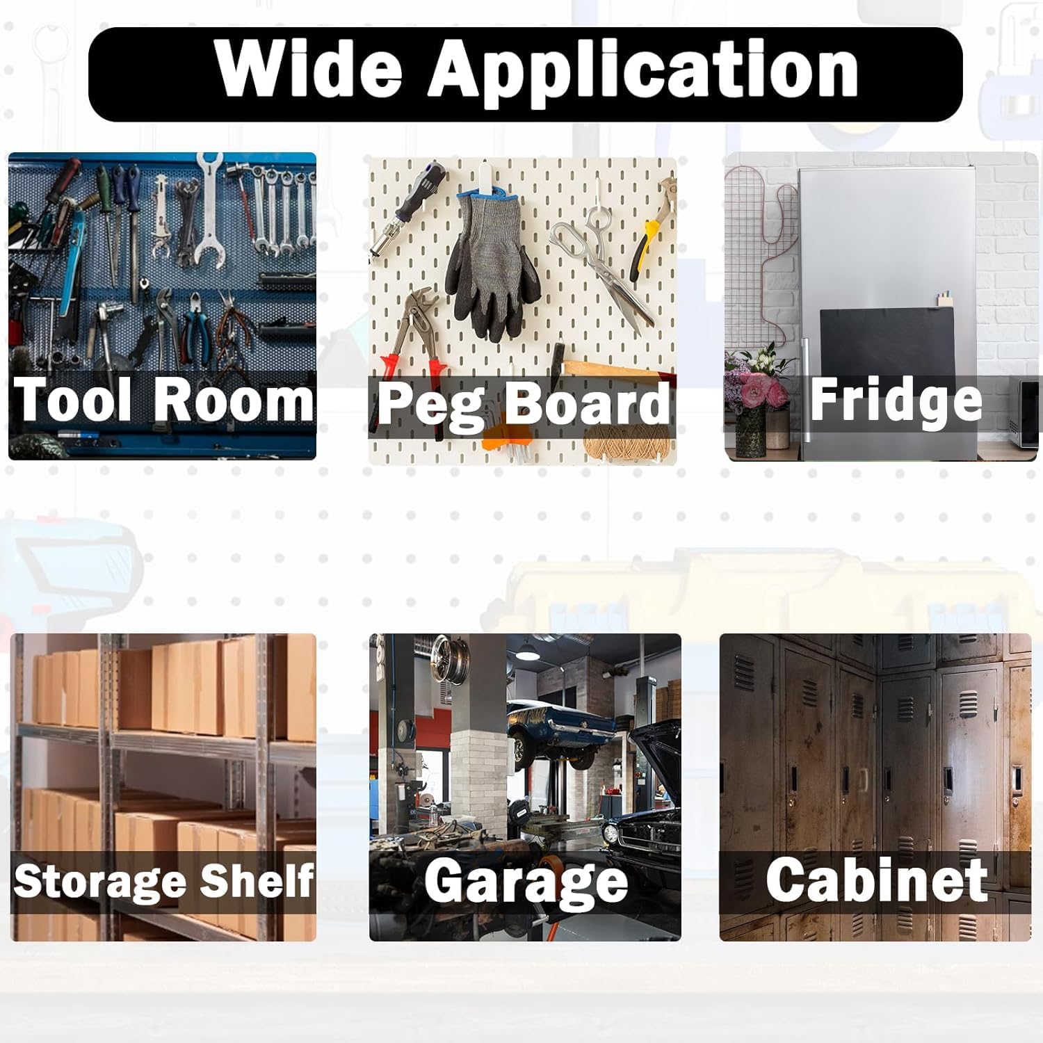 - 🧲[Aniti-Scratch Magnetic Hooks]: The magnetic hooks are sturdy and durable, the round black non-slip rubber coating on the bottom is designed to fix objects, protect its surface from scratches or damage, and prevent the hook from slipping and rusting.These magnetic garage hooks can be used indoors and outdoors.