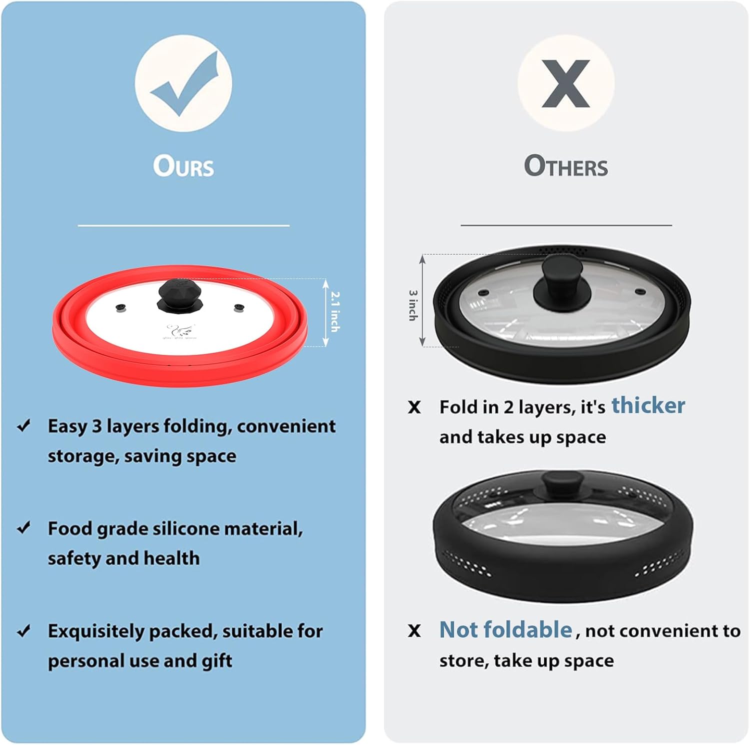 - 【UNIQUE HANDLE】: Splatter guard lid with easy grip silicone diamond handle, 100% Tempered glass, 100% food grade, BPA Free and dishwasher safe, It can also be used as a common pot cover, Convenient multi-purpose pot cover.