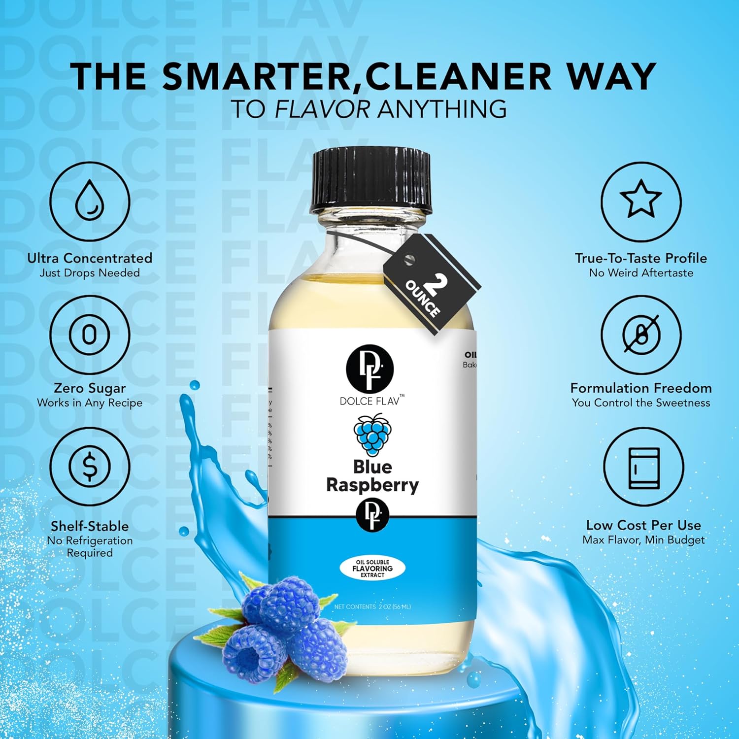 Dolce Flav Blue Raspberry Extract – 2 Ounce Oil-Soluble Kosher, Sugar-Free, Concentrated Blue Raspberry Flavoring for Baking, Chocolates & Desserts, Includes Measured Dropper