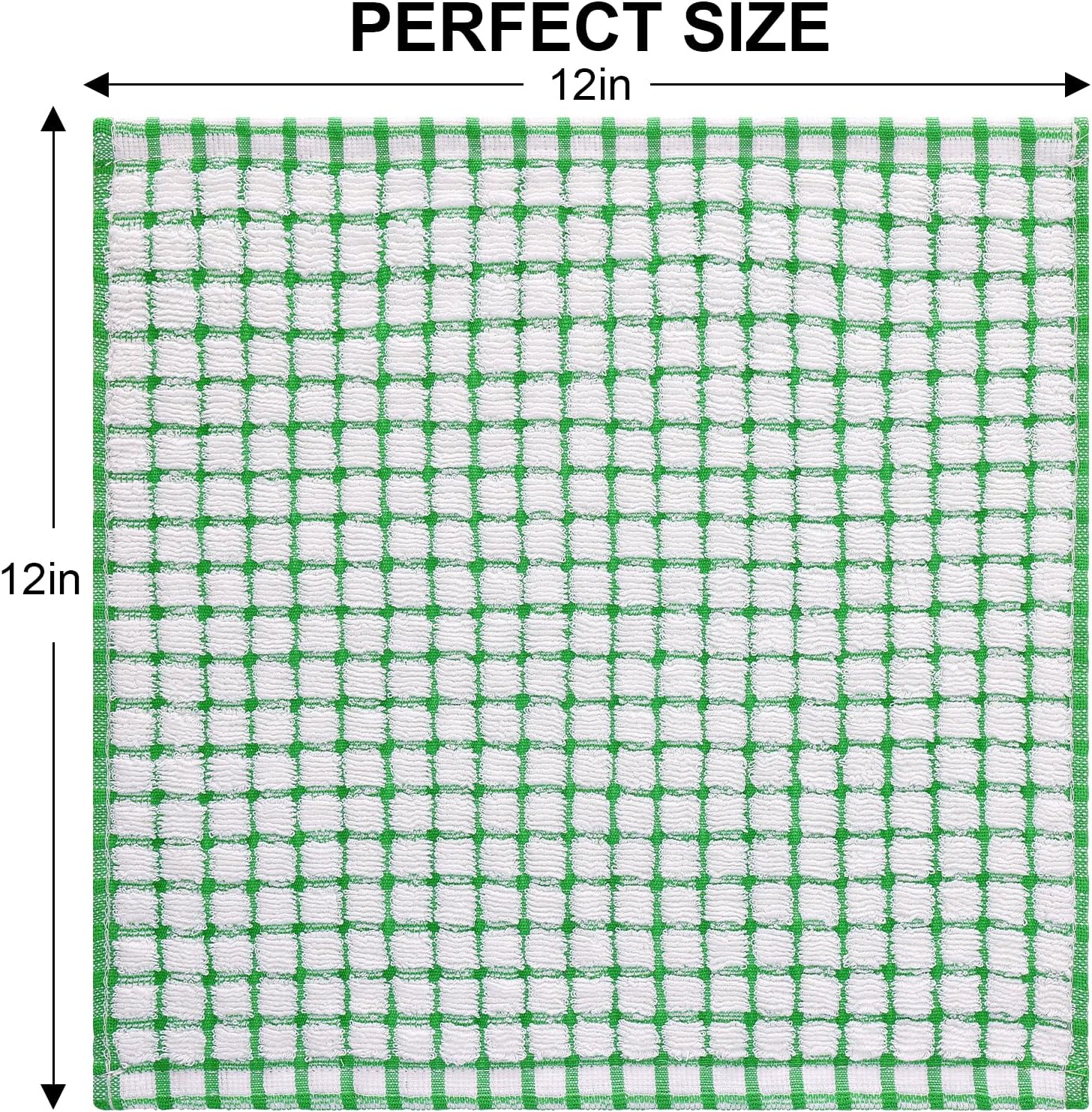 Kitinjoy Cotton 8 Pack Terry Kitchen Dish Cloths, 12 x 12 Inches Super Soft and Absorbent Dish Rags, Quick Drying Dish Towels for Washing Dishes, Green