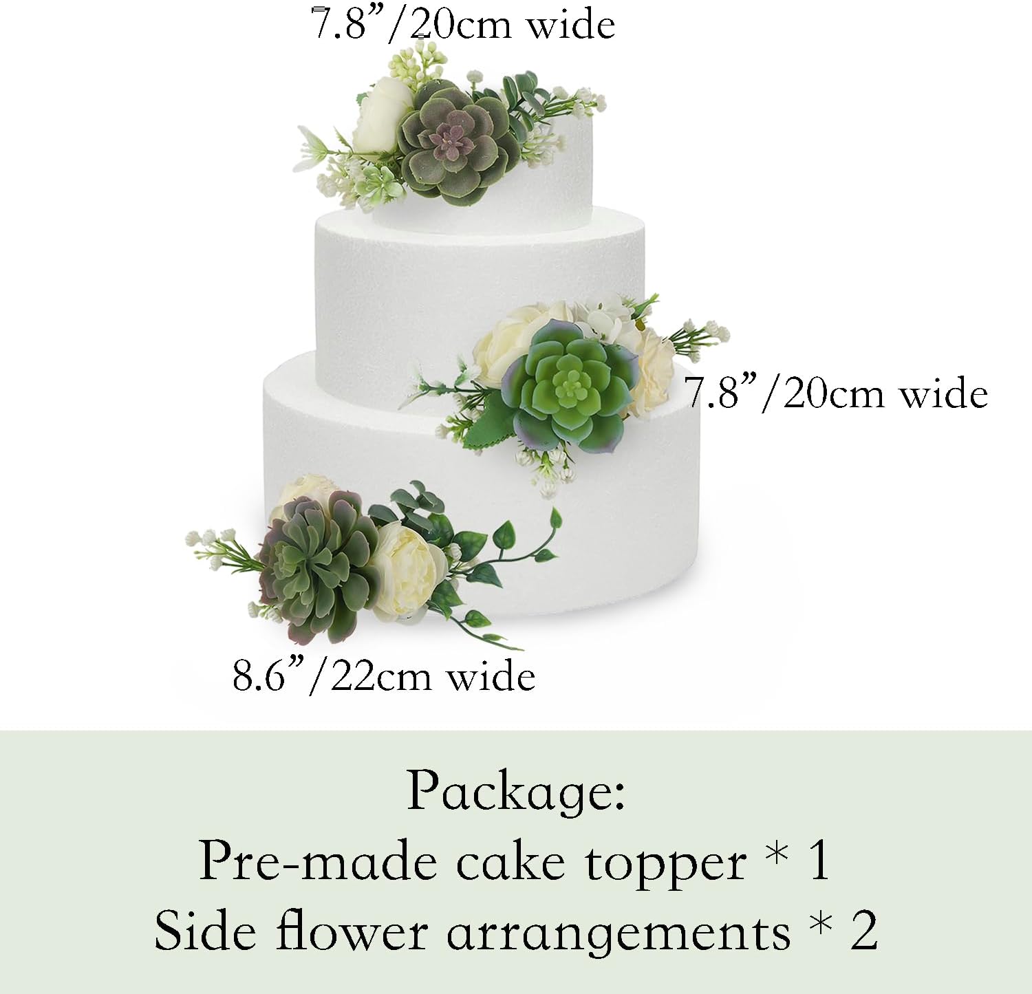 Rinlong Pre-made 3Pcs Faux Succulent Cake Decorating Flowers Cake Toppers Green Cake Decorations Wedding Birthday Baby Shower Spring Cake Decor Topper