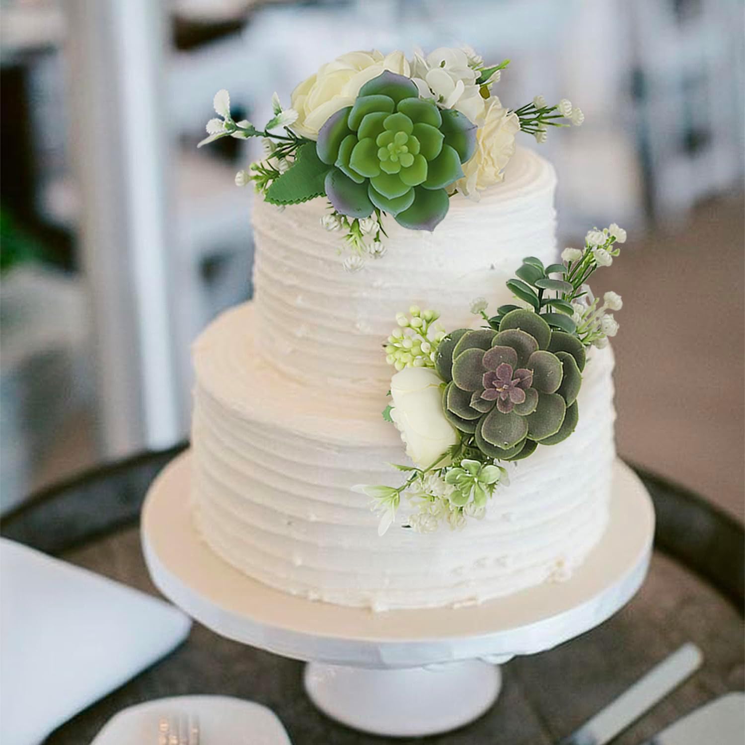 - Pre-Arranged Set - Convenient set comes with 3 artfully arranged succulent pieces in complementary sizes, shapes and colors, ready to elegantly decorate your cake.