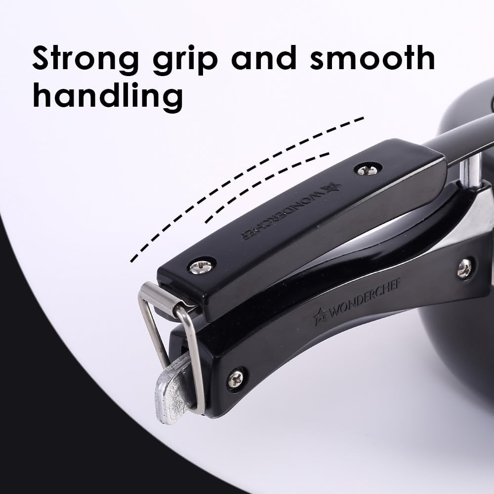 Wonderchef Taurus Hard Anodized Inner Lid Pressure cooker, 3 liter, Cool Touch Handles for Durability, Induction Friendly, 5 year warranty, ISI Certified3 LitresBlack