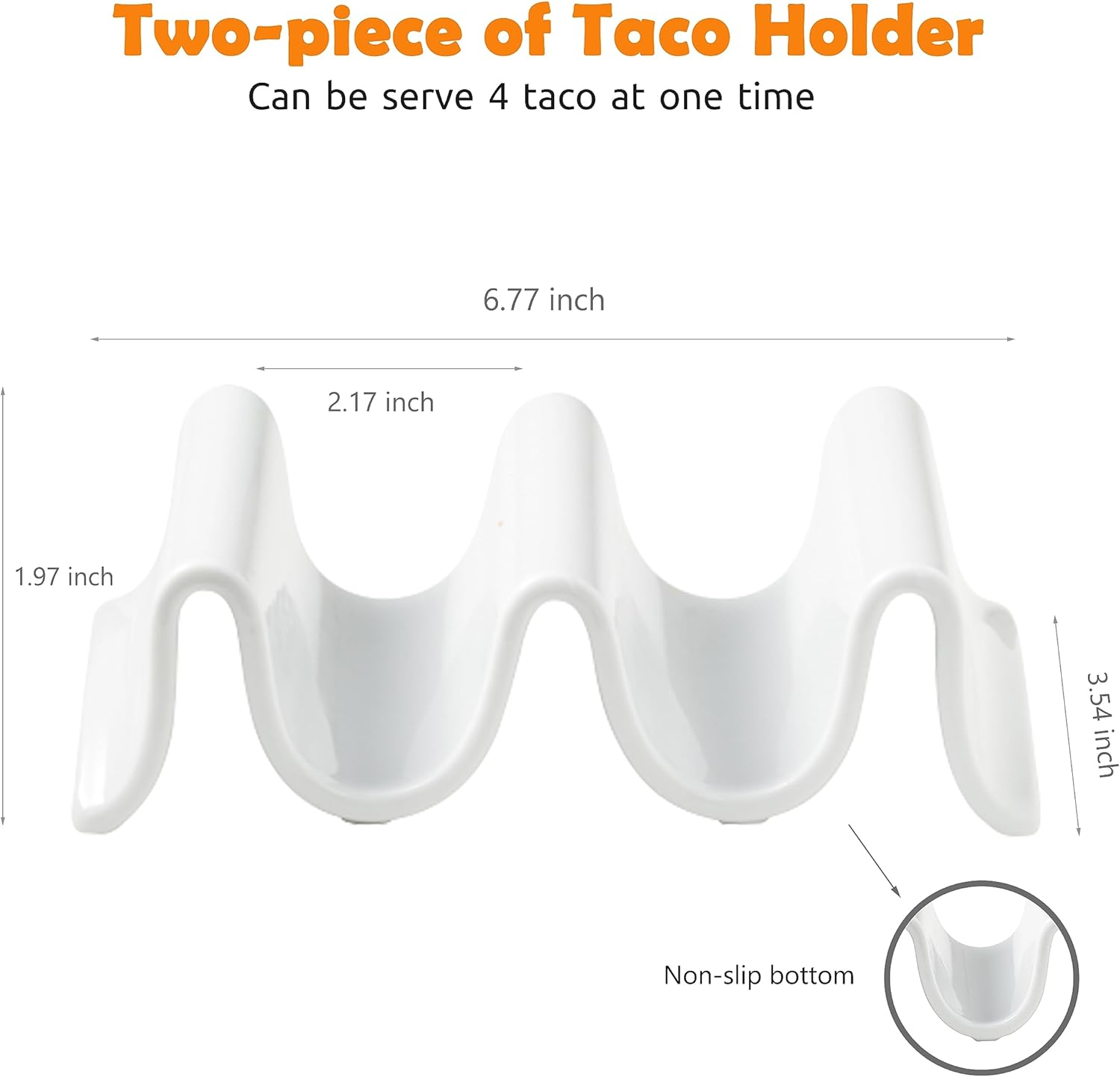 - Durable & Stacked: Stackable and well-matched elegant white. These taco shells holder racks can be stacked without taking up much space. Reusable and easy to clean, the hollows at each fold make it easier for you to pick up tacos