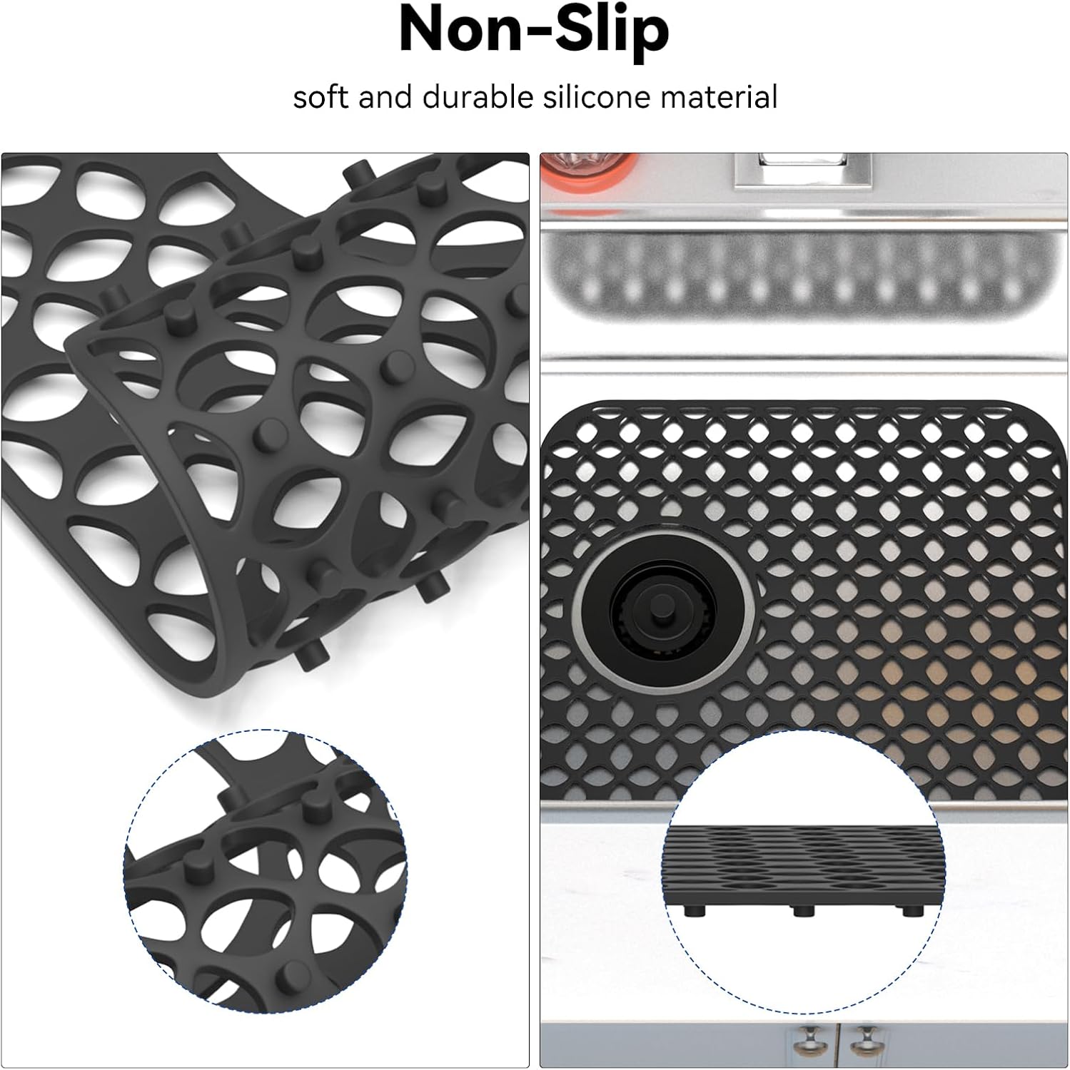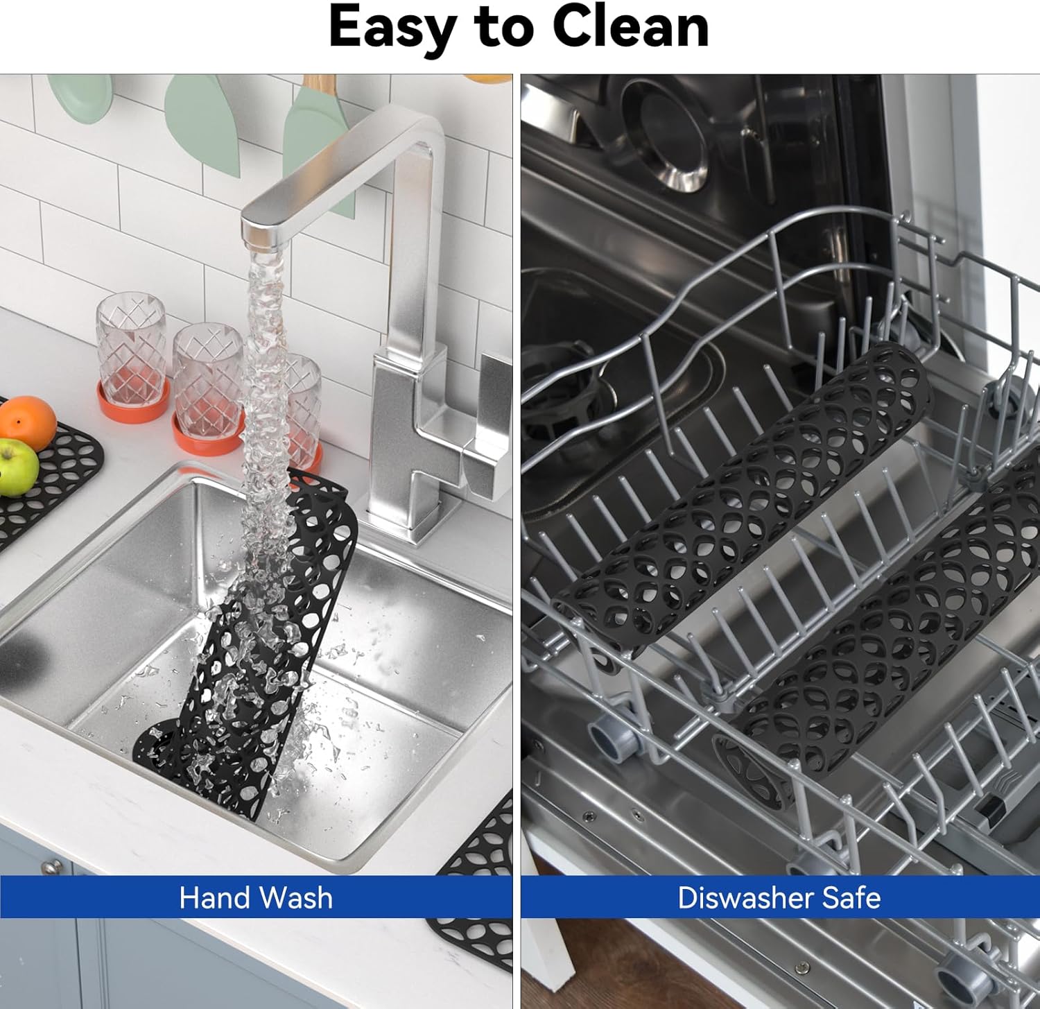 - Versatile Sink Mat: TOOVEM Silicone sink mats are bendable and foldable with good flexibility and will not deform or rust, sink protection mat won't scratch and damage the kitchen countertop or sink but also can protect glass, ceramic bowls and wine glasses from accidental breakage, providing safety for your kitchen utensils