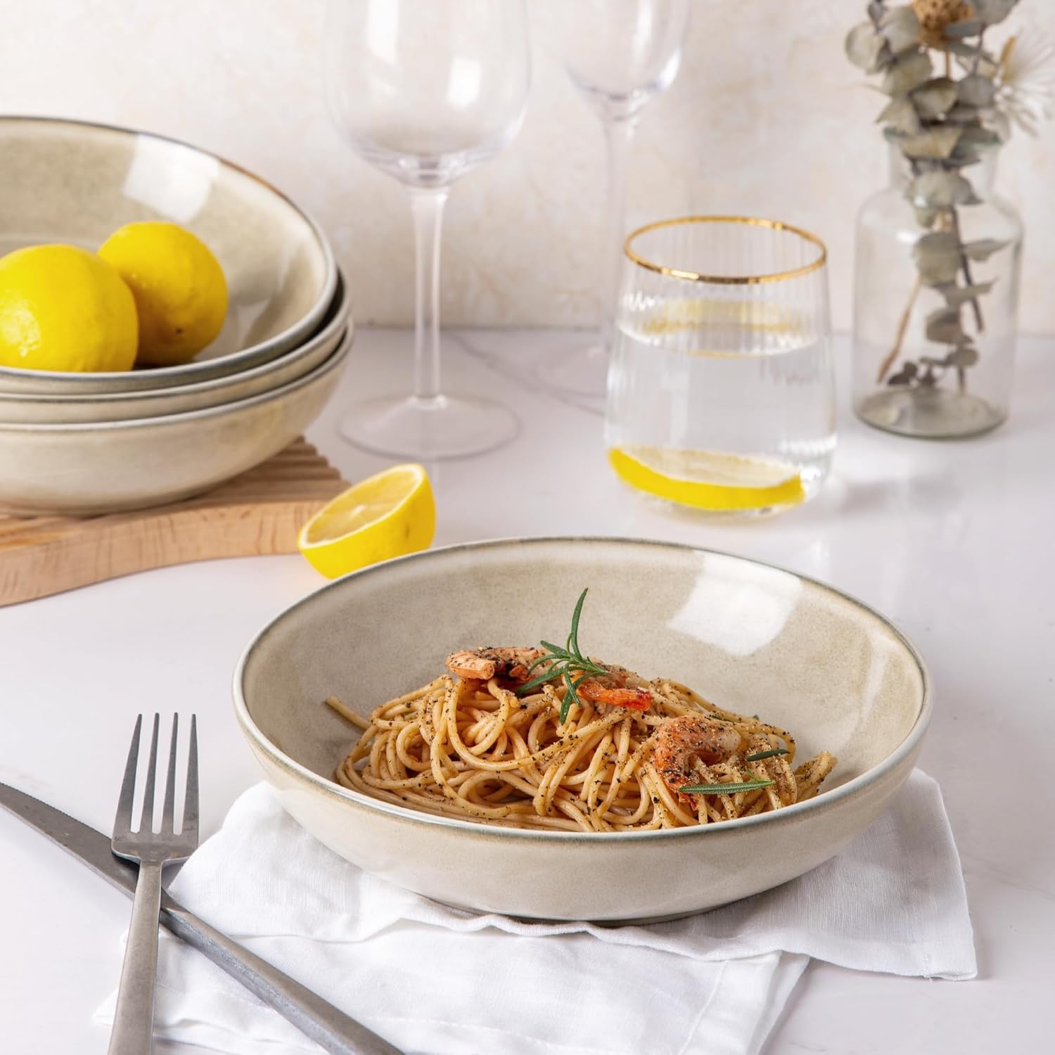 - STACKABLE & DISHWASHER SAFE: made of durable stoneware, These Pasta bowls are stackable and dishwasher, microwave, freezer safe! You also can wash them with dish soap and hot water easily, and humanized design make it take up a little space in your cabinet.