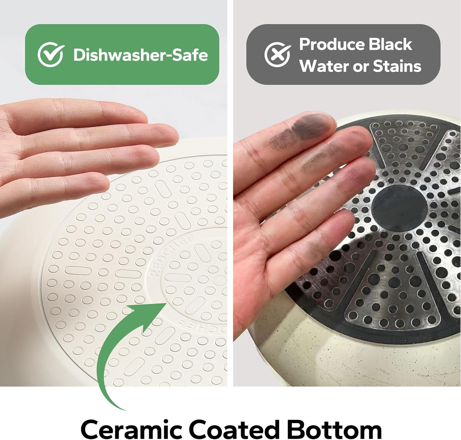 Redchef Nonstick Frying Pans Set, Ceramic Pan Skillet, Non Toxic Pans for Cooking, 8" 9.5" 11" Ceramic Frying Pan Set PFAS & PTFE & PFOA Free with Stay Cool Handle, Dishwasher & Oven Safe, Beige White