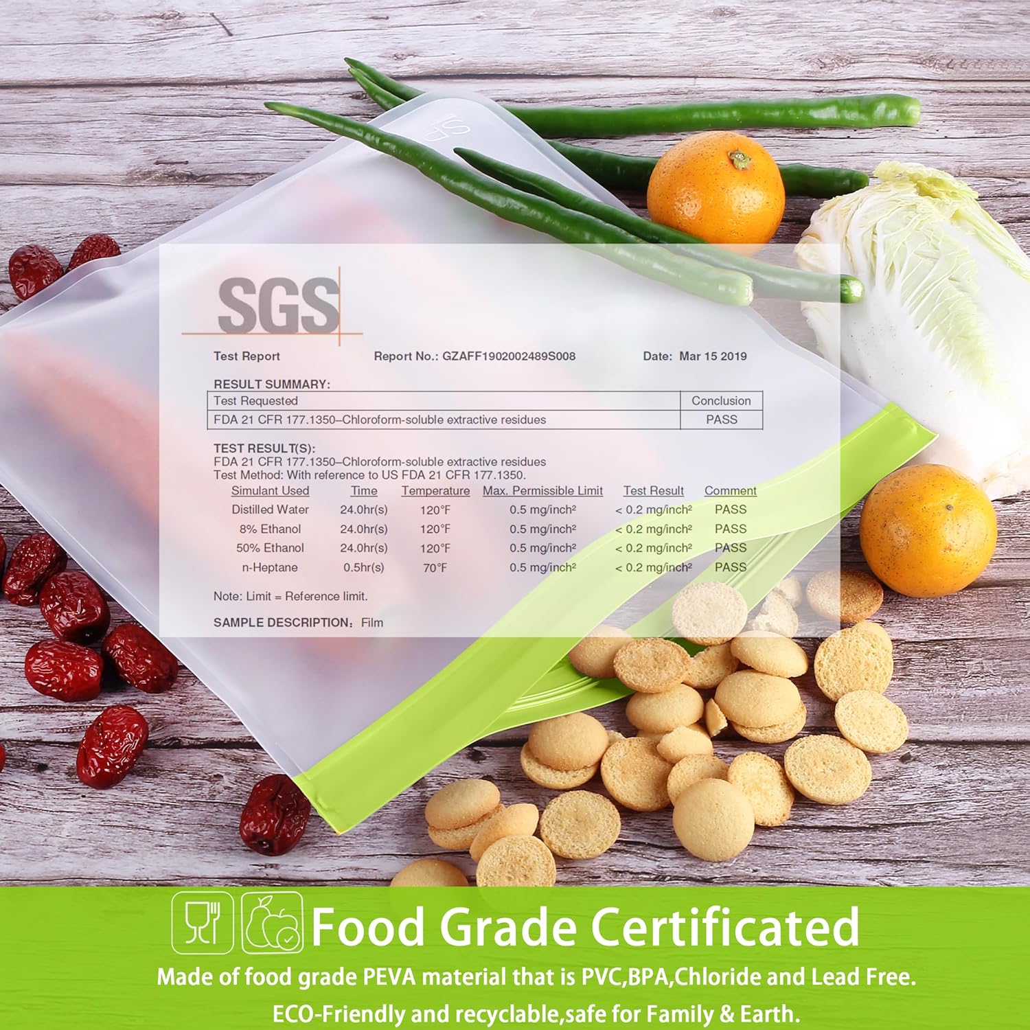 - Food Grade Material: Choose SPLF brand for Truly food-grade reusable storage bags. Made of food-grade PEVA material that is PVC, BPA, Chloride and Lead free. Healthy and safe for family and earth.