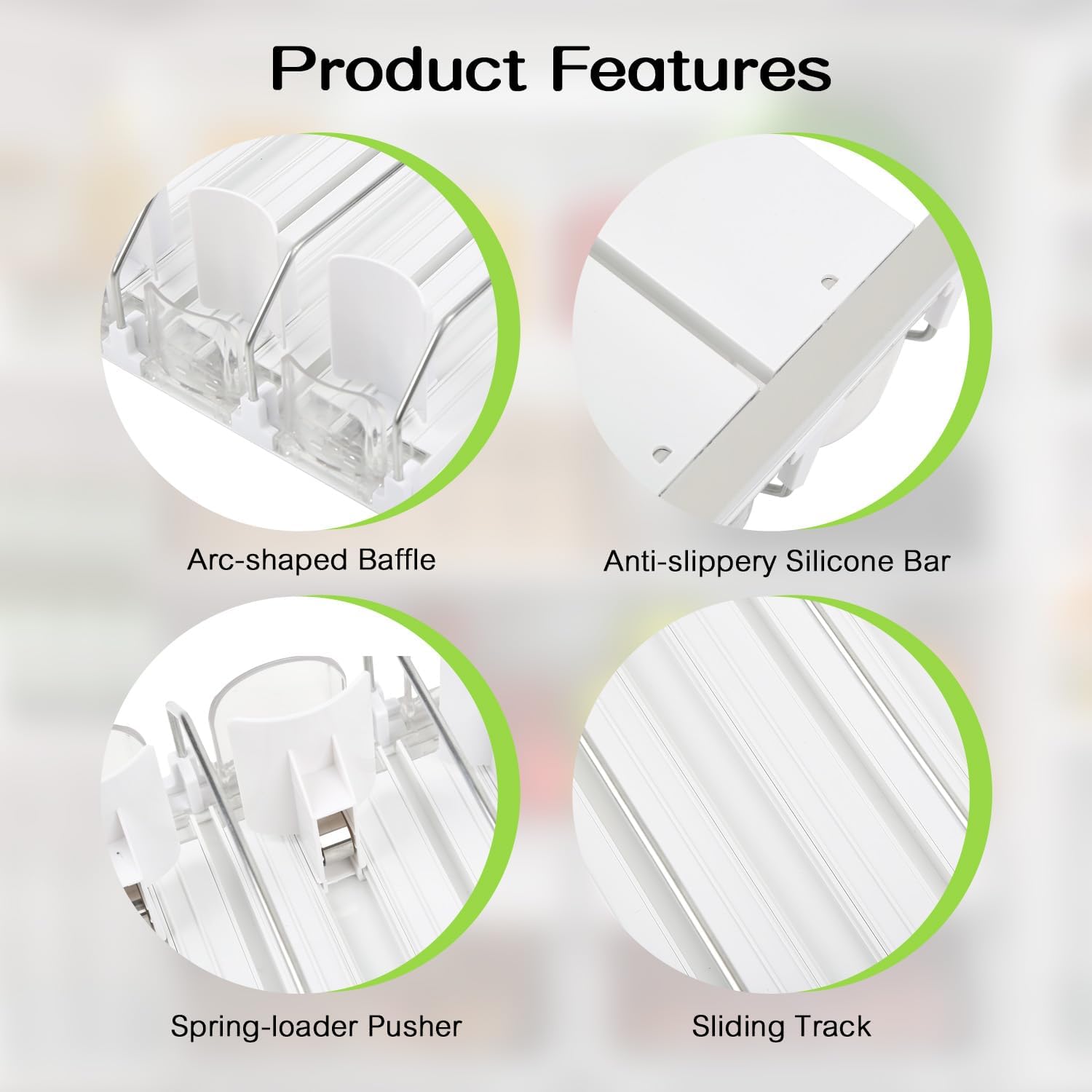 - 【More Sturdy】 The fridge drink dispenser is made of food-grade materials. The partition is made of stainless steel, which is waterproof and rustproof. The pusher is made of ABS material, which is more load-bearing and more wear-resistant. The horizontal rails are made of PVC, which can be cut to suit different length requirements.