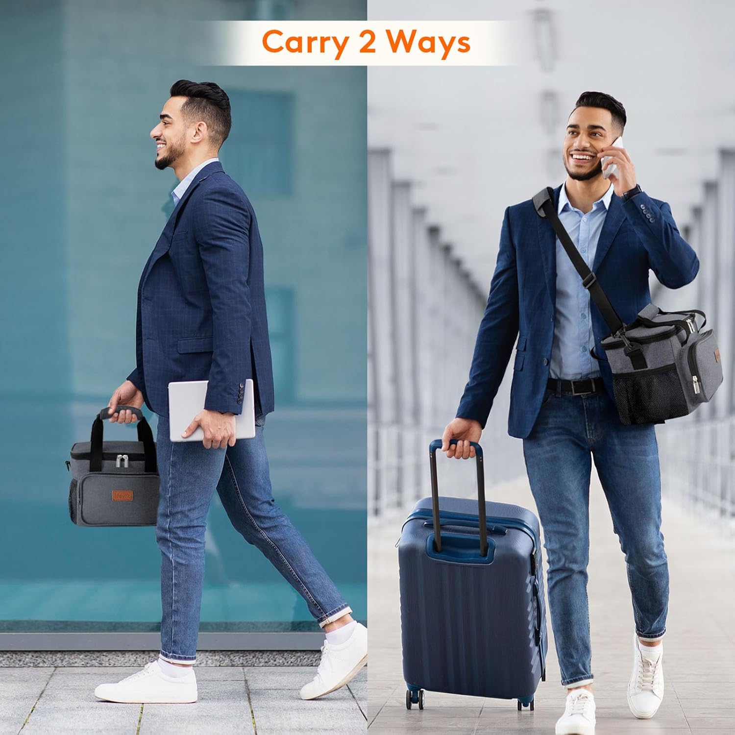- Convenient & Portable: The lid of this cooler lunch bag can be opened up widely with strong two-way zippers, which means you can put your lunch container into the bag and take out of the bag vertically. Prevent liquids from leaking out of the container and soiling inside the bag. Tough handles and shoulder girdle allows you to carry it easily. Moreover, the front and side extra pocket can hold small items like keys and earbuds.