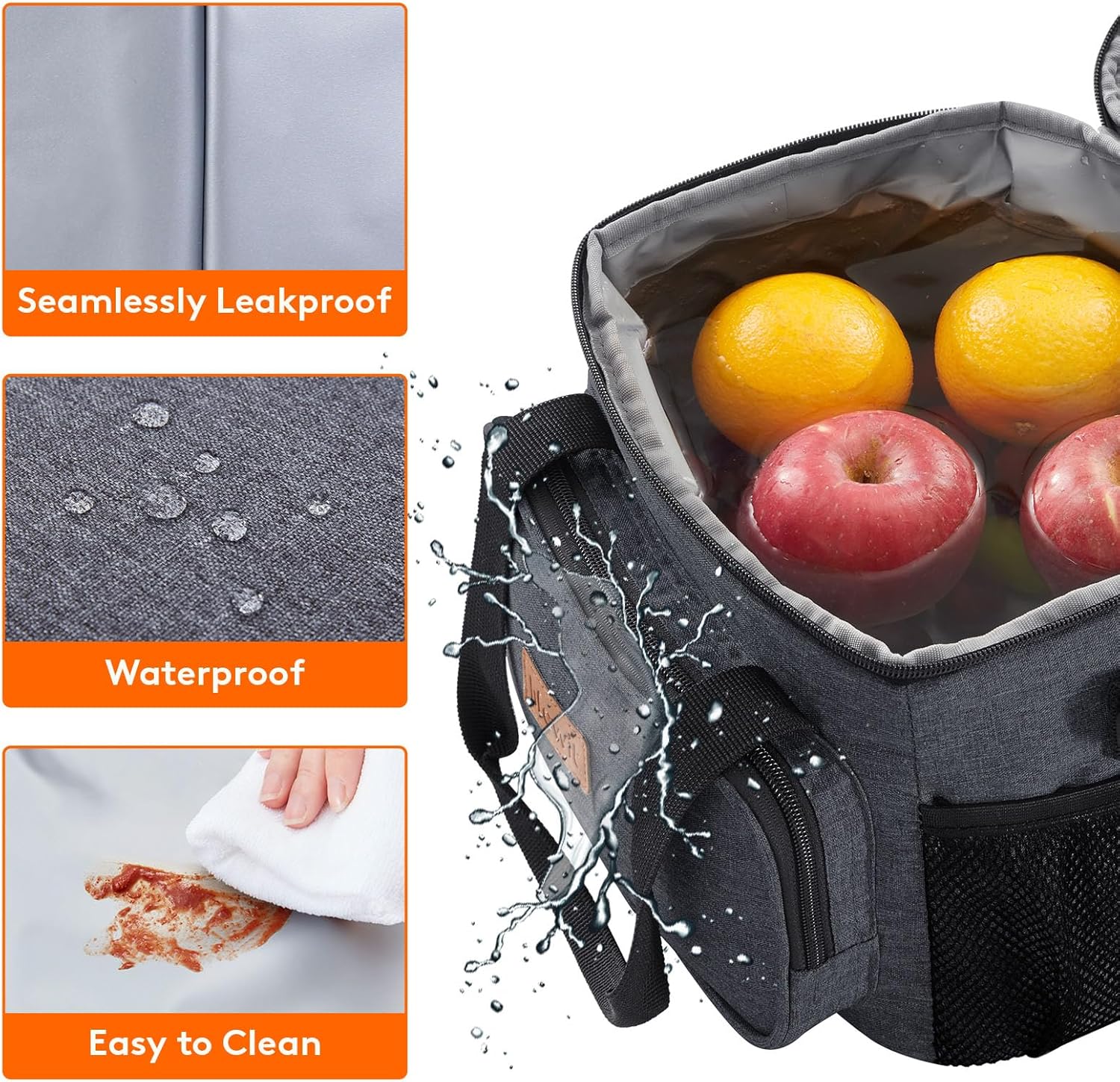 - Leakproof & Waterproof: The exterior of lunch box for men is constructed out of 600D water-resistant dirt-proof Oxford fabric for durability and water proofing and easy cleaning. Even when full with water and ice, it holds fruits and drinks well, will not leak at all.