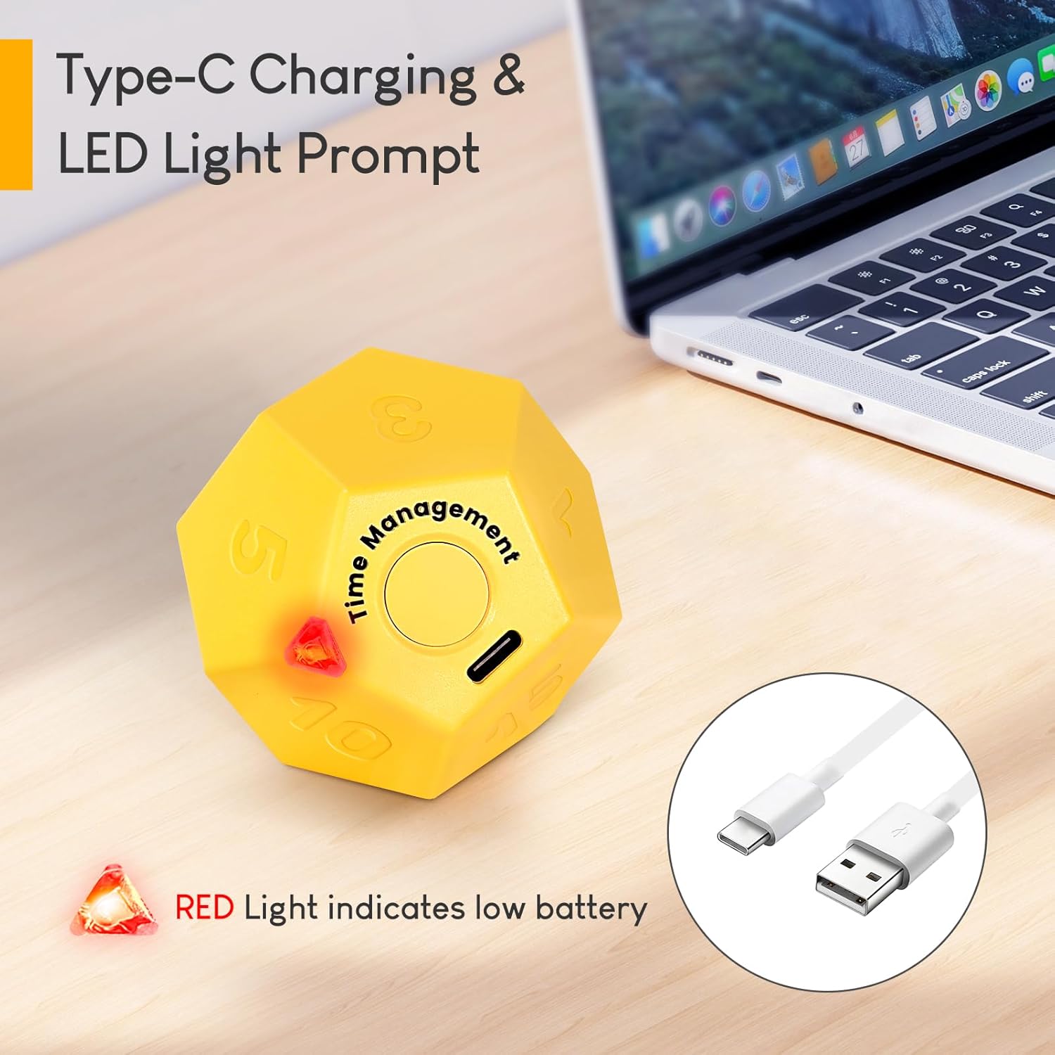 - 【Typc Charging】 Desk timer for productivity has a rechargeable battery and USB-C charging port, don't have to replace the battery,to avoid waste valuable time and money to buy extra batteries,task timer has an LED indicator to indicate power situatio, red light (low power), blue light (full power), Allow us grasp the status of the timer at a glance.