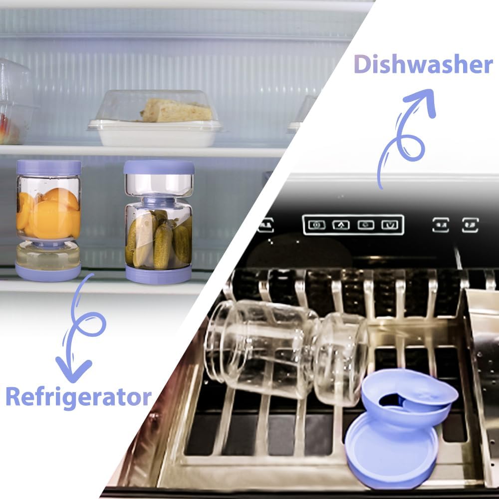 - DURABLE & SEALABLE : Its glass body is made from upgrade lead-free high borosilicate glass(3.3mm thickness) to ensure safety and maximum durability. The pickle jar's lid and bottom is crafted with BPA free PP plastic and silicone, dishwasher safe, refrigerator safe, recyclable and durable. It can also tolerates -20β-560β (-4β-1040β) temperature, allowing you to use it for years to come. This is an especially great gift for anyone with creative kitchen displays!