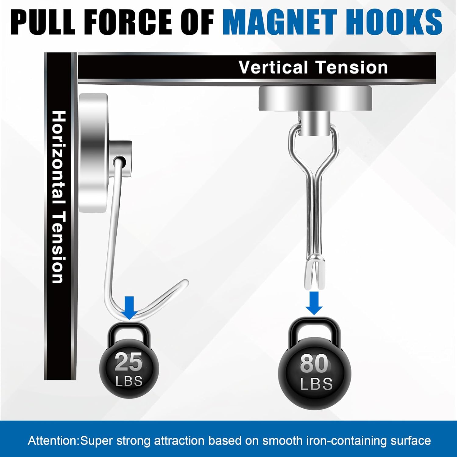 - 【 High Quality 】 The rotating swing magnetic hook heavy duty has a pulling force of 80 pounds and is based on horizontal applications - reducing by 2/3 if used vertically. The magnetic hook features a heavy and stable magnetic surface, with strong magnetism lasting forever!