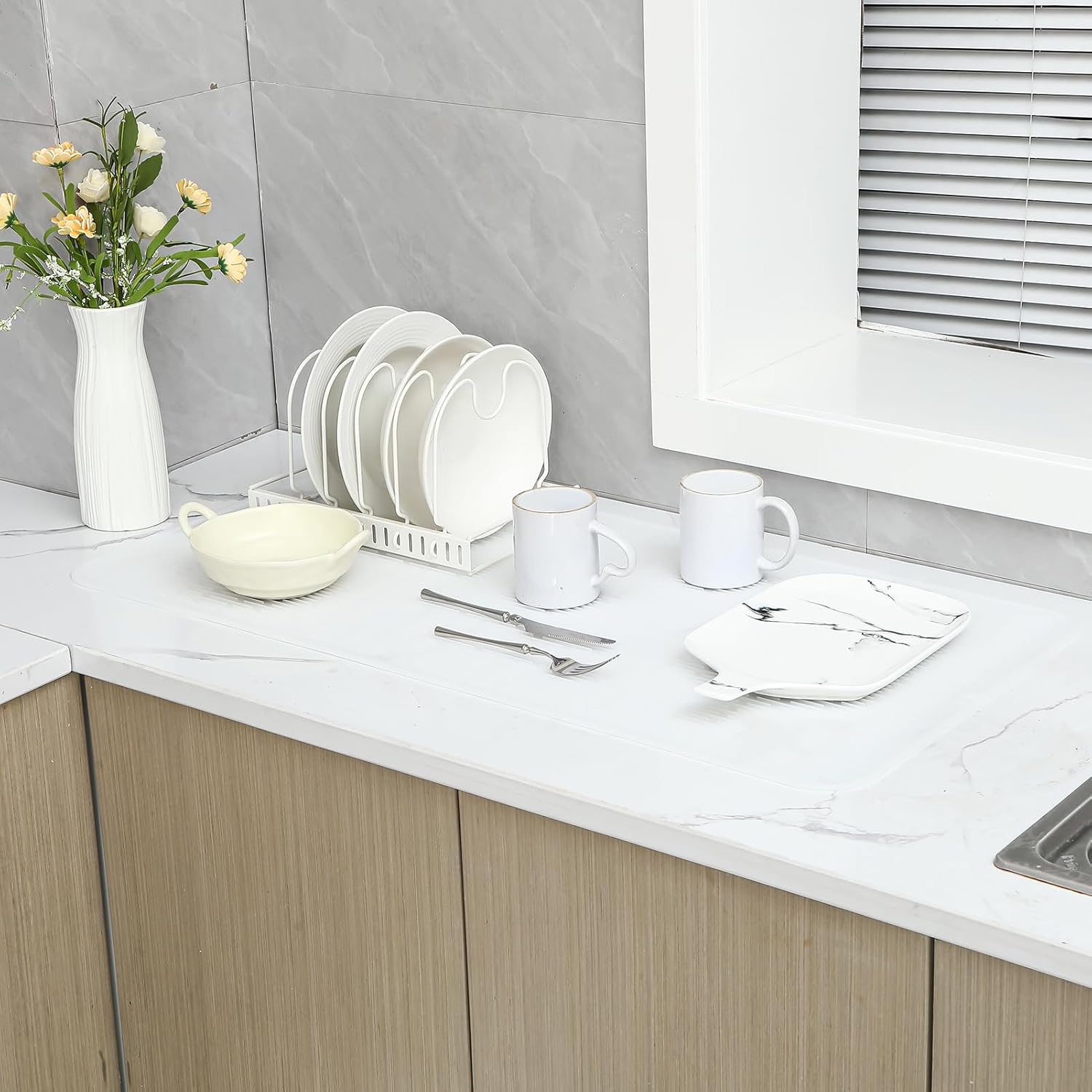 Silicone Dish Drying Mat for Multiple Usage,Easy clean,Eco-friendly,Heat-resistant Silicone Mat for Kitchen Counter or Sink,Refrigerator or Drawer Liner Translucent 5XL 36inches x 18inches