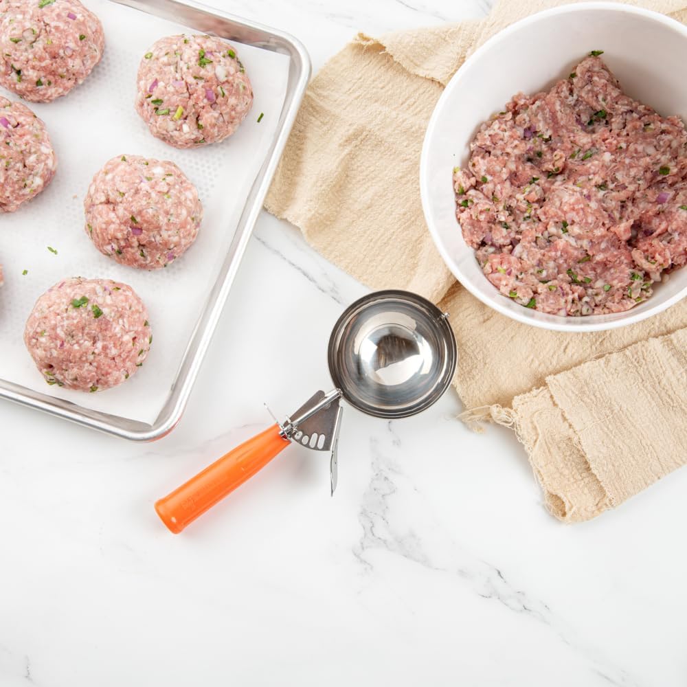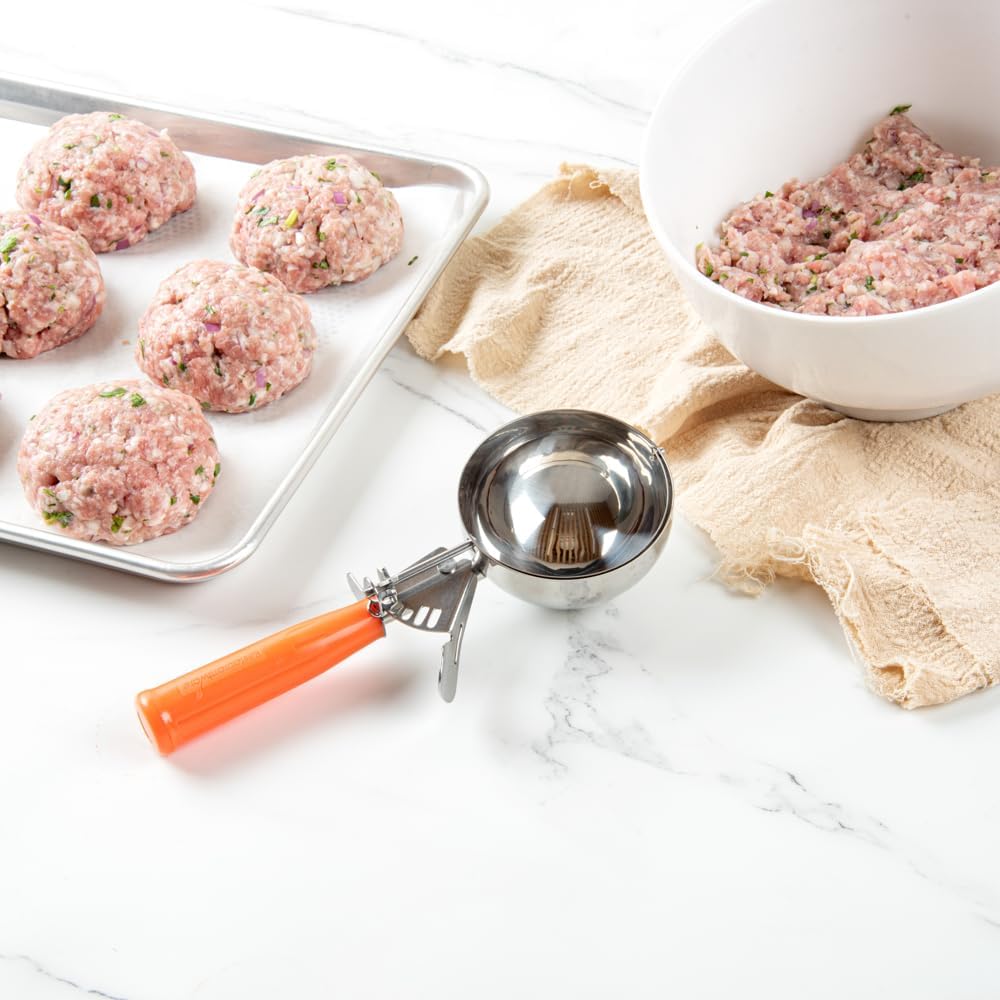 - HEAVY-DUTY CONSTRUCTION: Designed from premium stainless steel, this portion scoop is durable for long-lasting use, making them ideal for rigorous use. Scoop treats at your facility on a daily basis!