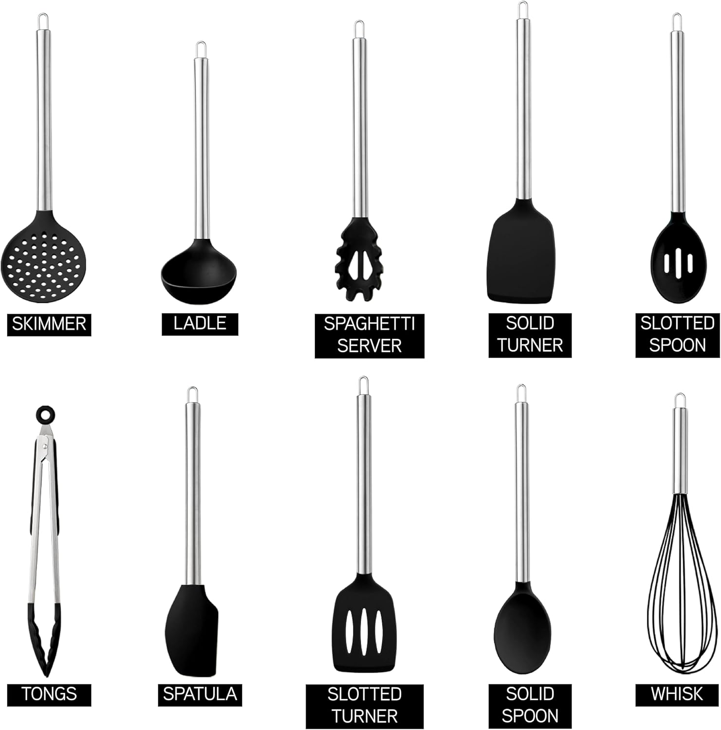 COOK WITH COLOR Silicone Cooking Utensils, Kitchen Utensil Set, Easy to Clean Silicone Kitchen Utensils, Cooking Utensils for Nonstick Cookware, Kitchen Gadgets Set, 10 Pieces, Black