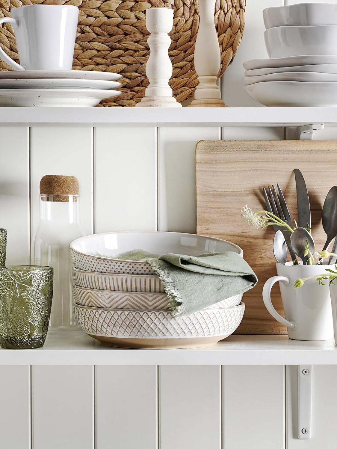 - Farmhouse Style, Nice Present: These pasta bowls are crafted in charming neutrals and earthy tones, featuring lovely lines on the sides. They create a clean, natural farmhouse feeling while adding a touch of textural interest to your space. They are also the good present for weddings, housewarmings, Christmas, and other special occasions. Everyone will like the timeless farmhouse look of these pasta bowls