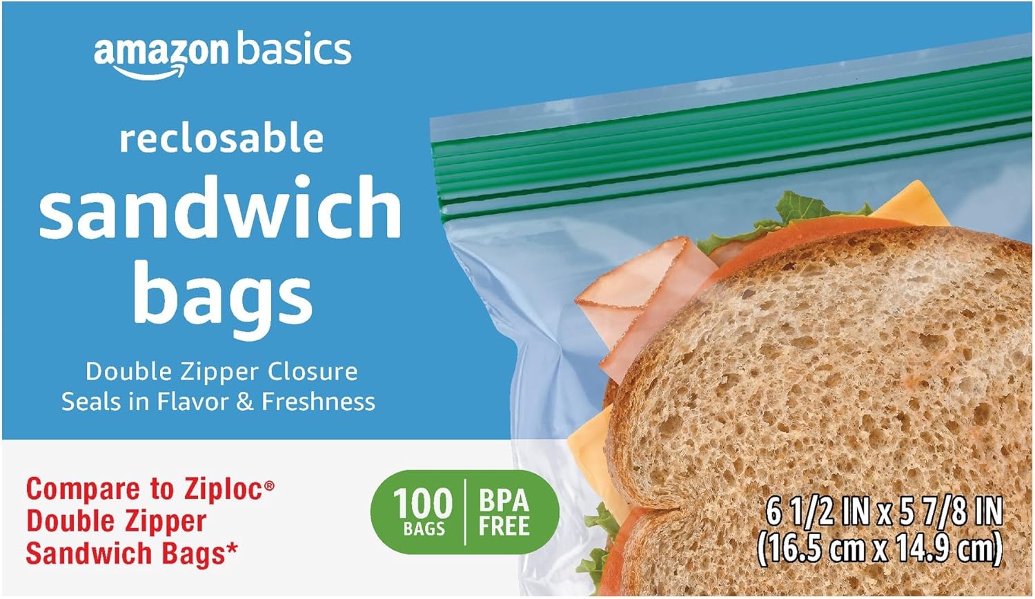 - Amazon Basics Double Zipper Sandwich Bags, 100 Count