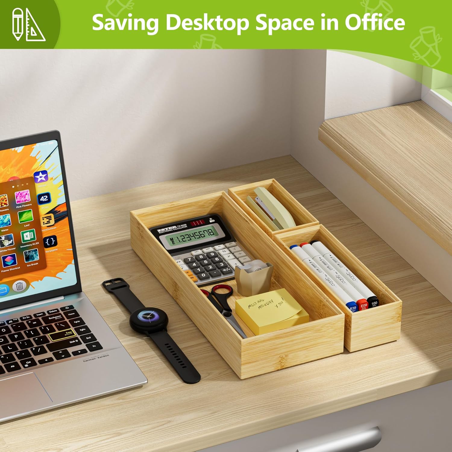 Silverware Bamboo Drawer Organizer Tray, 4 PCS Kitchen Drawer Organizer Storage for Utensil Cutlery, Bathroom, Office Desk, Makeup