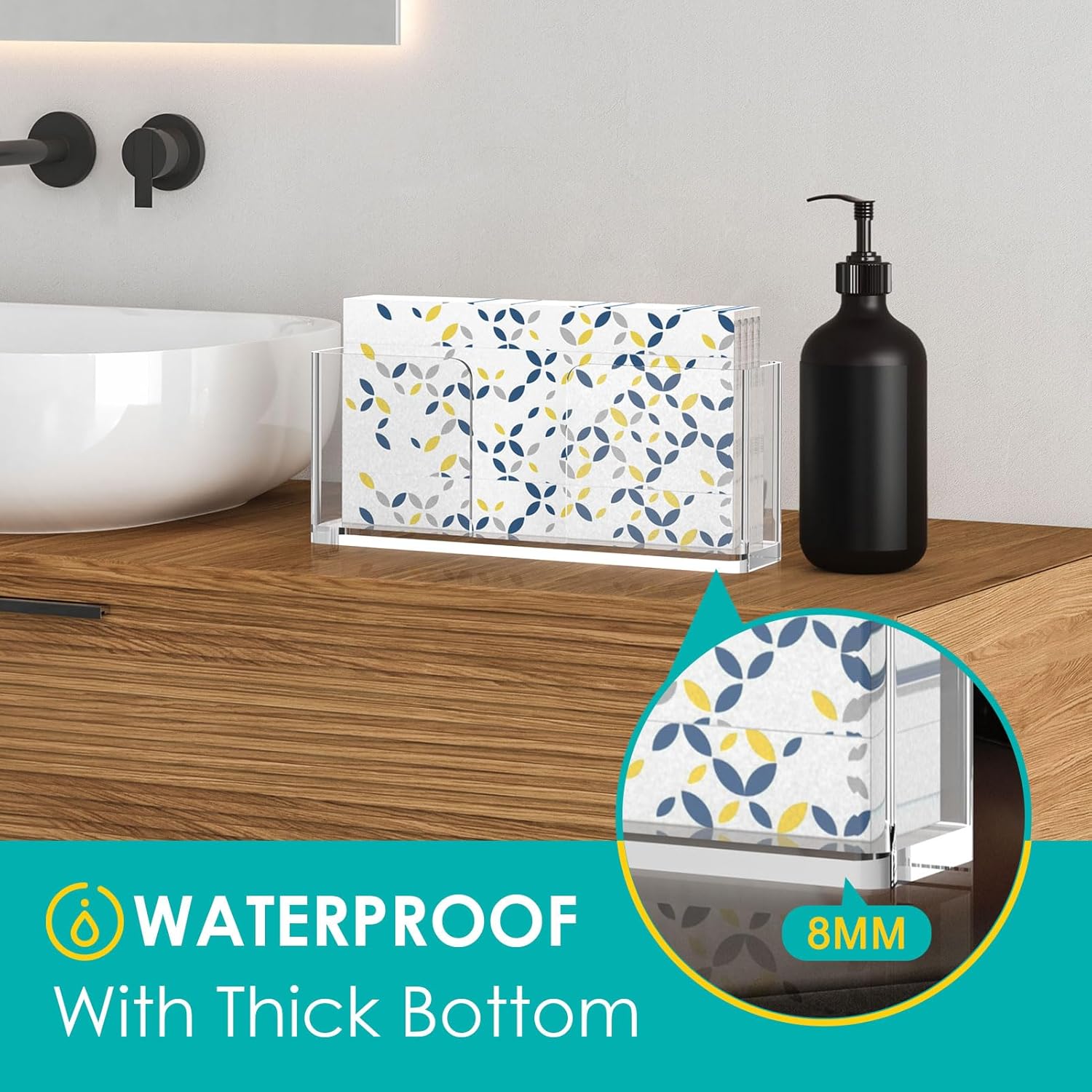 - 【Perfect Fit for Standard Napkins】8.7 x 3.5 x 2 inch interior fits most rectangular napkins, including cocktail, dinner napkins, and guest paper towels. Keeps your disposable towels dry, organized, and dust-free with easy access.