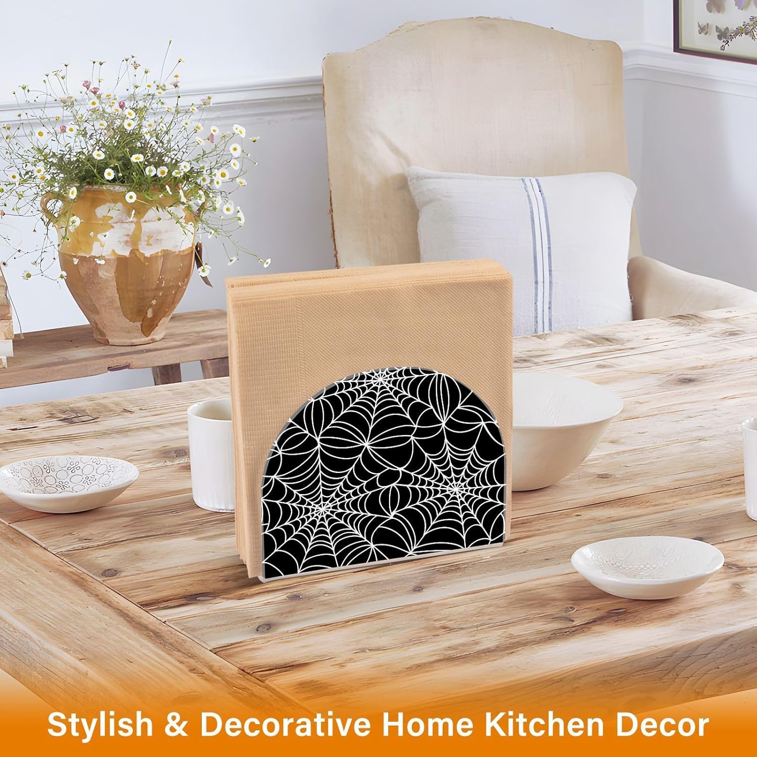 Halloween Spiderweb Napkin Holder for Table Paper Napkins Holder Acrylic Tissue Dispenser Kitchen Dining Room Bathroom Party Car Decor