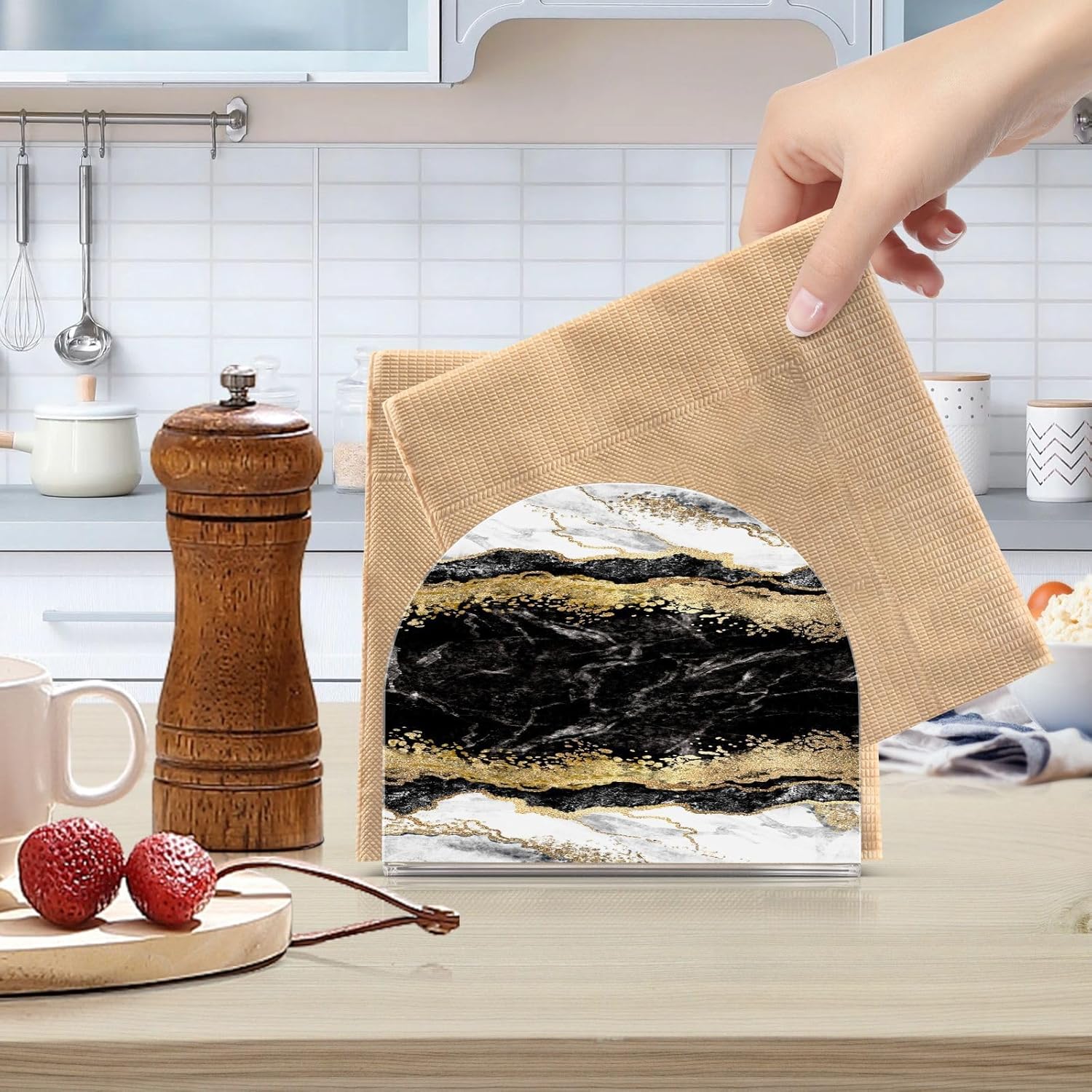 Black White Marble Gold Veins Napkin Holder for Table Paper Napkins Holder Acrylic Tissue Dispenser Kitchen Dining Room Bathroom Party Car Decor