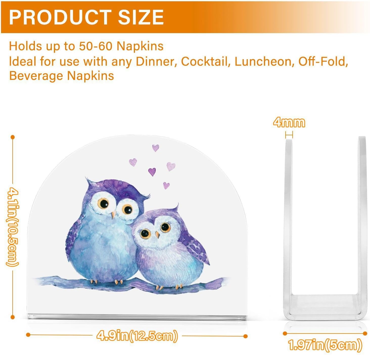 Cute Owl Napkin Holder for Table Paper Napkins Holder Acrylic Tissue Dispenser Kitchen Dining Room Bathroom Party Car Decor