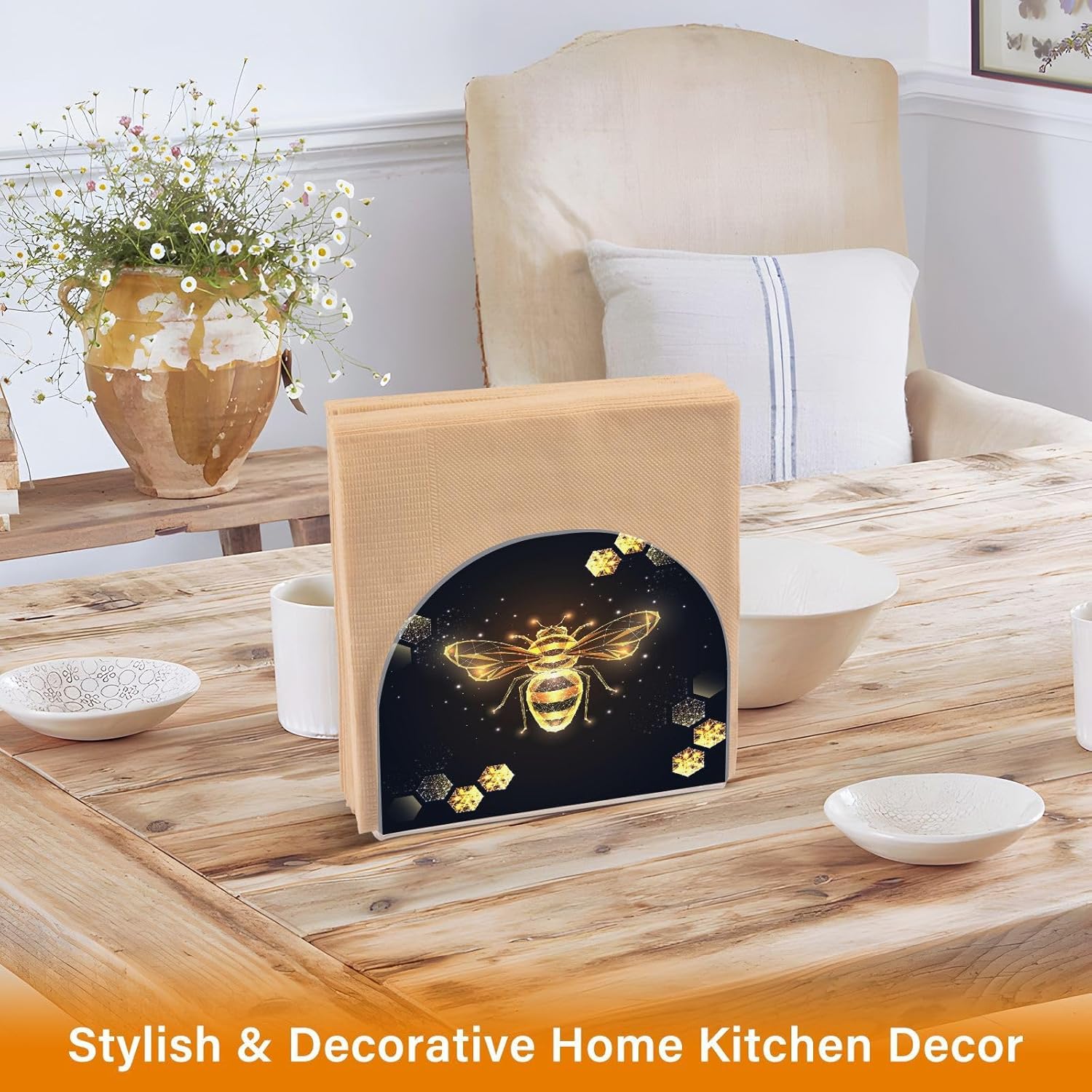 Gold Honey Bee Honeycombs Napkin Holder for Table Paper Napkins Holder Acrylic Tissue Dispenser Kitchen Dining Room Bathroom Party Car Decor