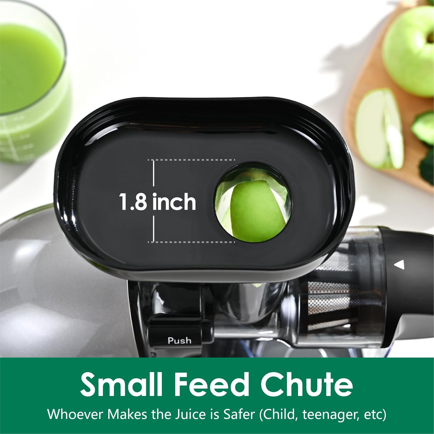 - Safe to Make Juice: Brecious Slow Pure Juicer Machine are 100% BPA free and come without any blades or sharp parts, making it safe for your entire family. Otherwise,our juicers have designed a 1.8 inch small diameter feed chute to ensure safe use. Whoever (Child, teenager, etc) Makes the Juice is Safer