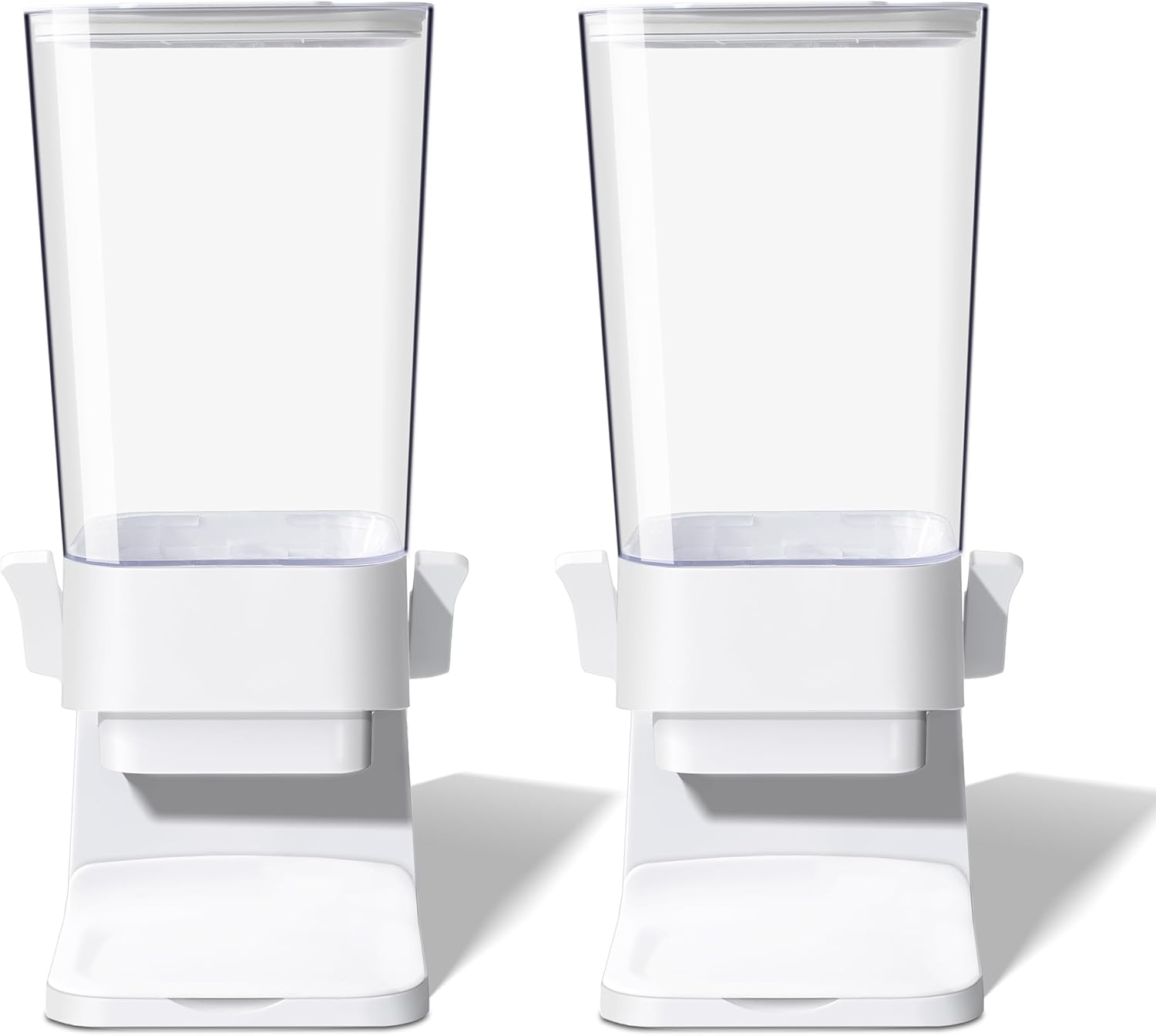 Cereal Dispenser Countertop, 5L Cereal Containers Storage Dispenser for Pantry, Large Dry Food Cereal Dispenser, Not Easy to Crush Cereal, Can Hold Oatmeal, Snack, Grain, Pet Food (White, 2Pc)