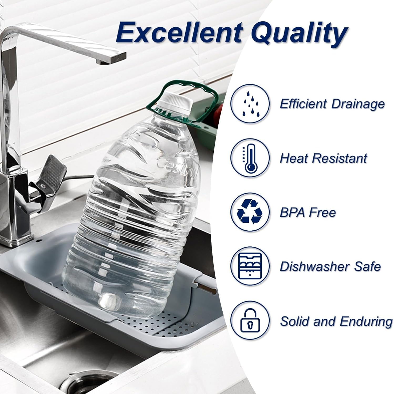Extendable Sink Colander Strainer Basket - Wash Vegetables and Fruits, Drain Cooked Pasta and Dry Dishes - Adjustable Over the Sink Colander Collapsible Drainer Basket -Gray