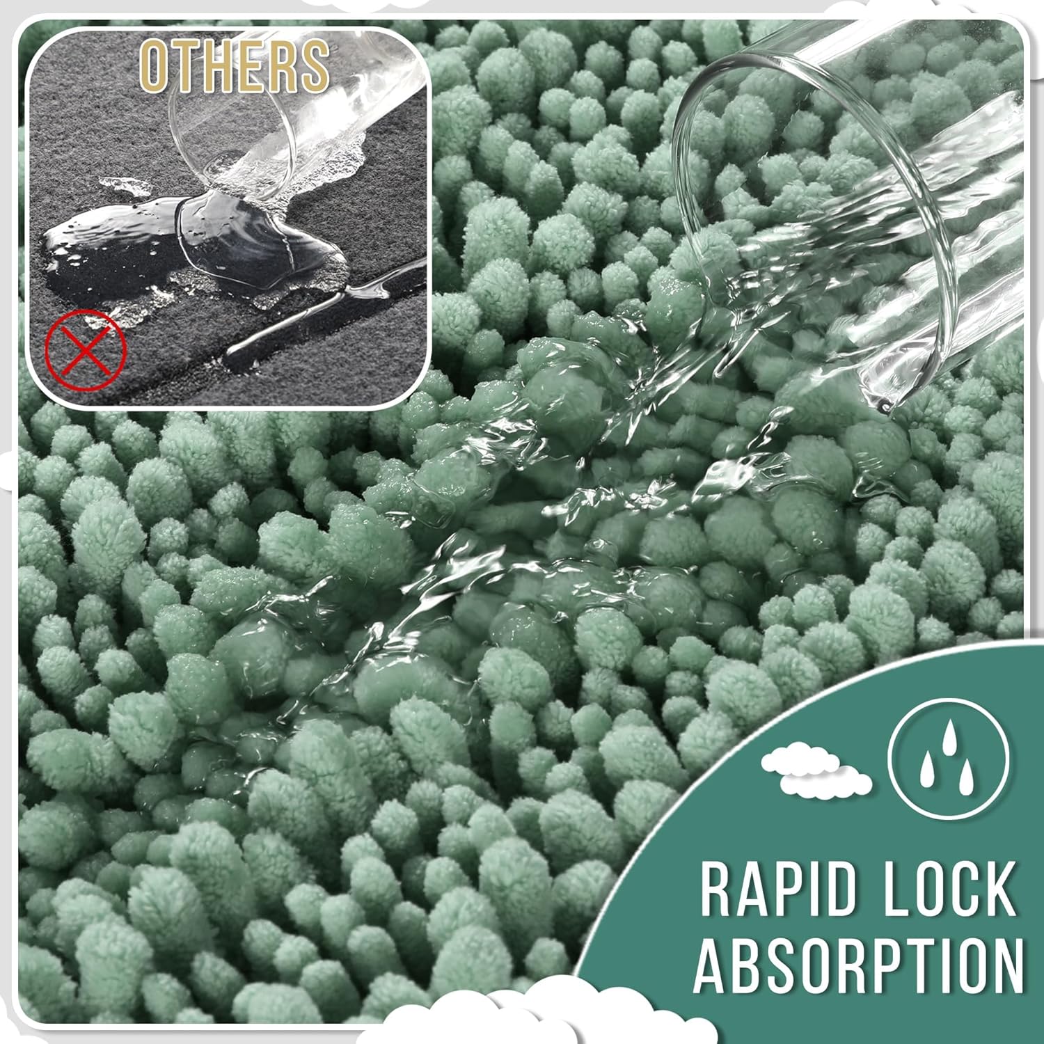 Yimobra Bathroom Runner Rug 55x24 Inch - Extra Long Non Slip Chenille Bath Mat, Soft & Absorbent, Machine Washable Shaggy Hallway Carpet for Vanity Tub Shower, Green Home Decor Accessories