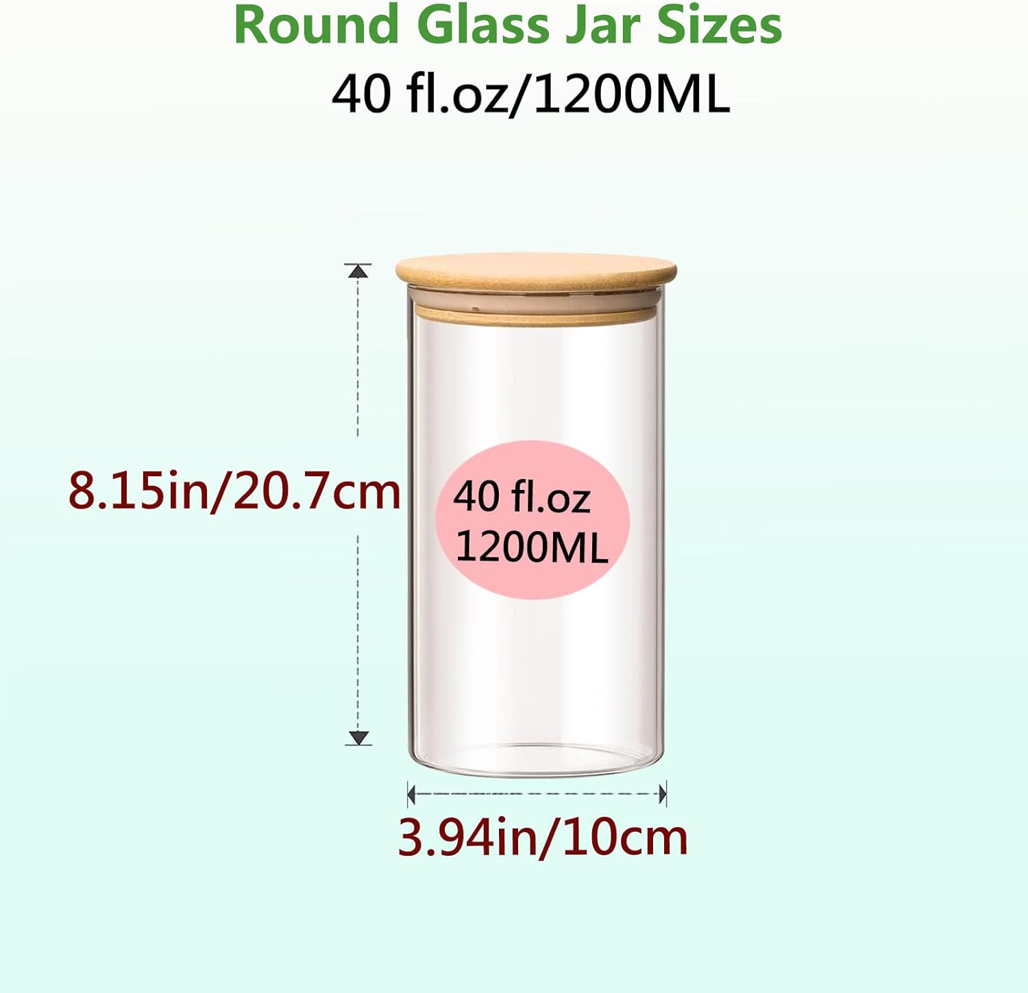 - [Product Capacity] 3 Round jars with ,Size: Capacity is 40 ounces of liquid/1200ml and dimensions are 3.94x8.15 inches(10cmx20.7cm),It can store cookies, candy, flour, rice, beans, spice, cereals etc.Note: This glass jar is not suitable for Spaghetti