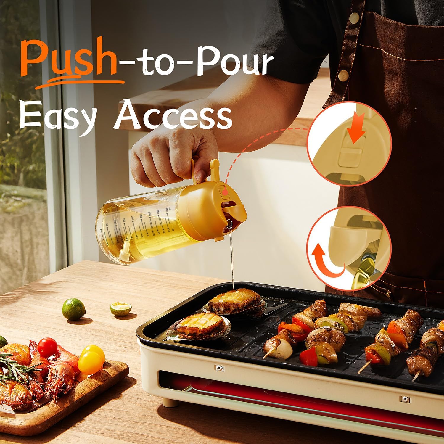 - Dual Dispensing: This oil mister offers both spray and pour options for total control while cooking. It’s a versatile oil dispenser bottle spray and pour as needed to keep your kitchen clean, organized, and efficient.