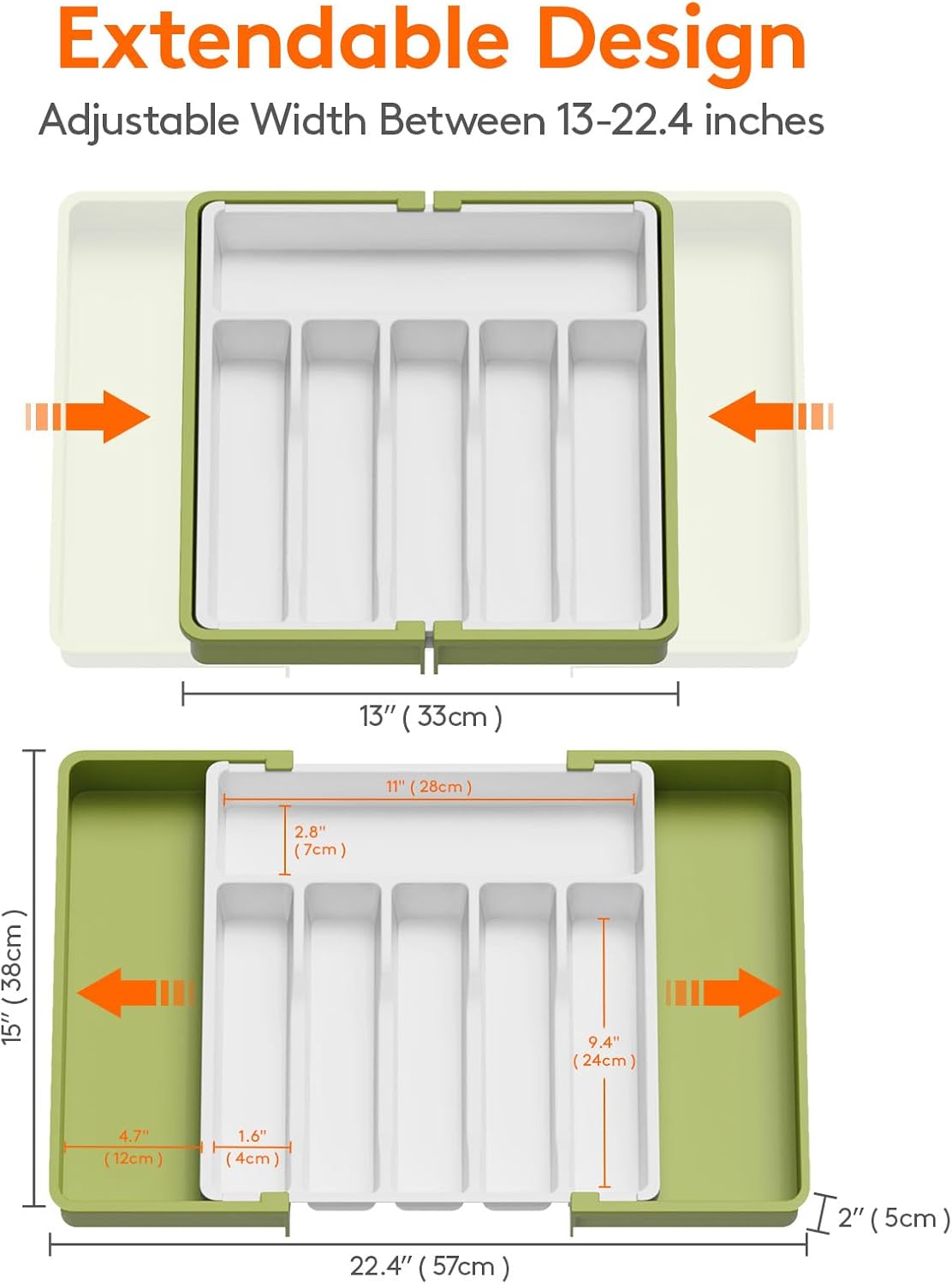- Large Capacity: Organize your kitchen drawer and make more space with this silverware organizer. Comes with two expandable panels on the left and right to store more silverware, cutlery, and kitchen utensils.