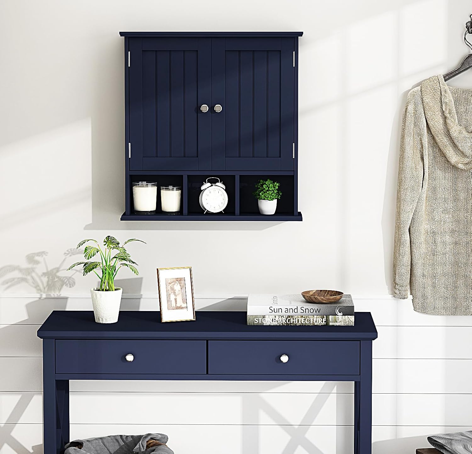 ChooChoo Bathroom Cabinet Wall Mounted 2-Door with 3 Open Shelves, Wooden Medicine Cabinets with Adjustable Shelf,Space Saver Storage Cabinets Over The Toilet for Bathroom&Living Room,Blue