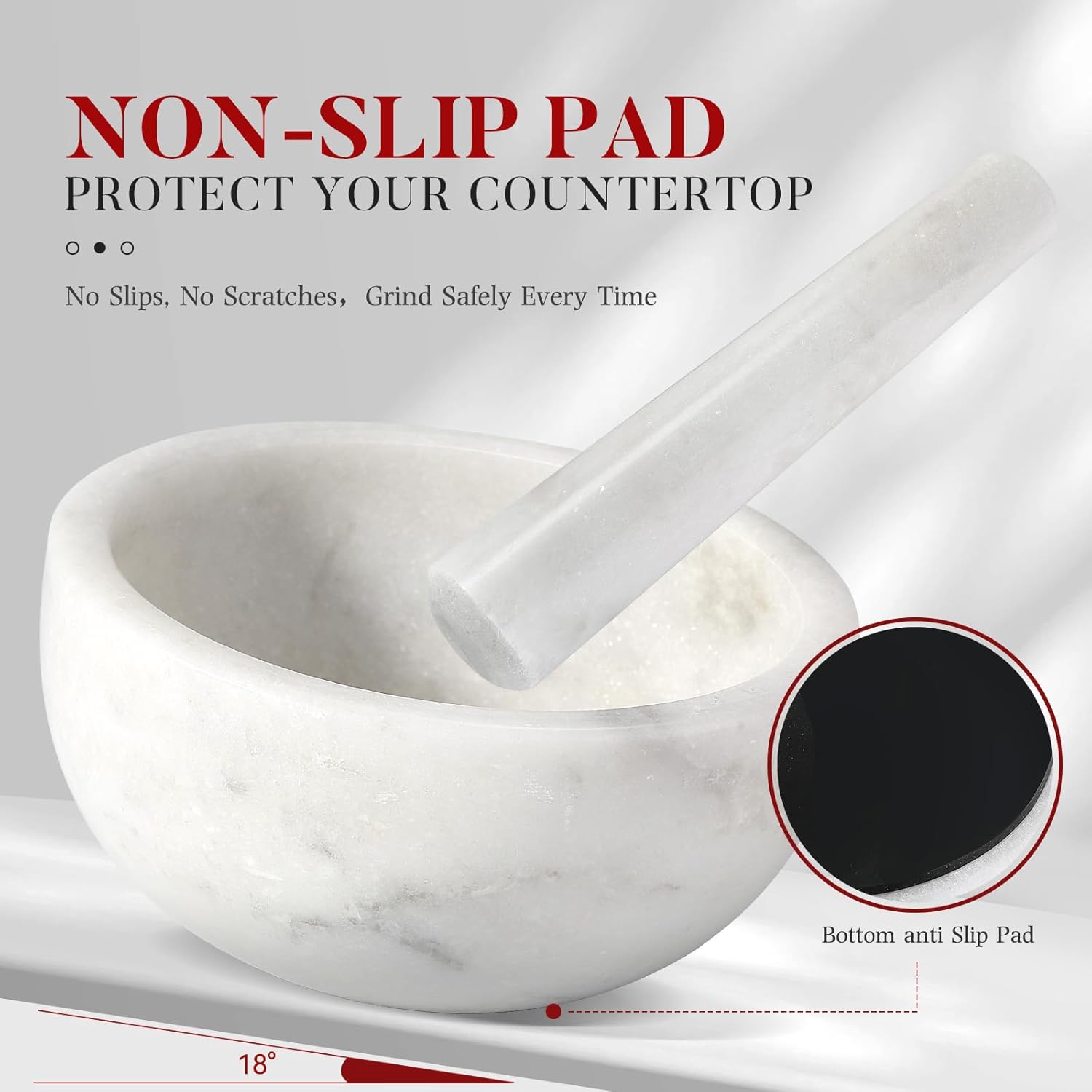 - Healthy and Safety: The marble mortar and pestle set is super safe in contact with food. Natural stone has superior safety properties that will not spoil the flavor of food or leave food residue, The external is well-polished, super easy to clean