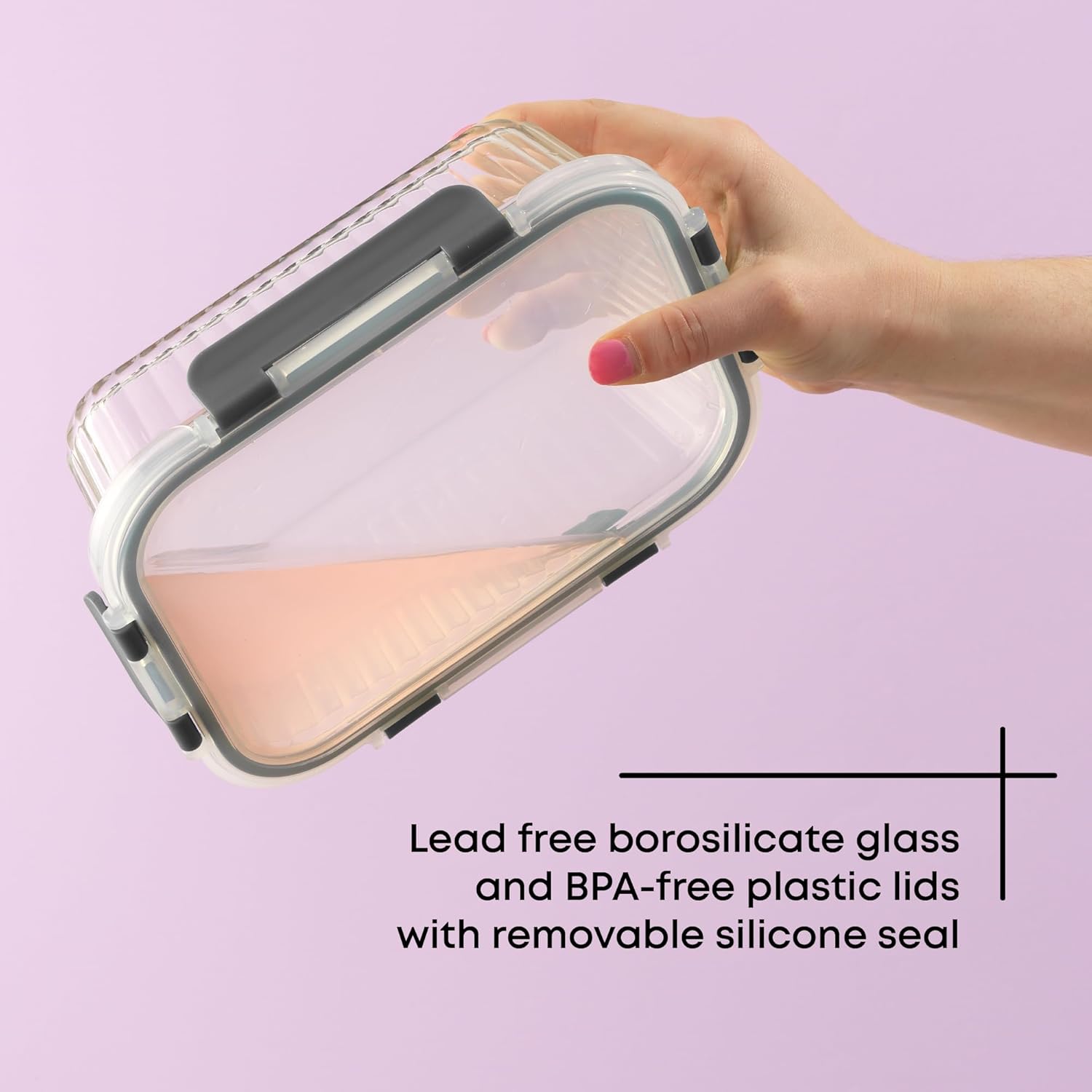 - AIRTIGHT FRESHNESS: These airtight containers feature a removable silicone seal and secure hinge clips, so you can use them as a food container without odors or air getting in or out! They're also leakproof glass lunch containers, so fill them as soup containers in your lunch bag without fear!
