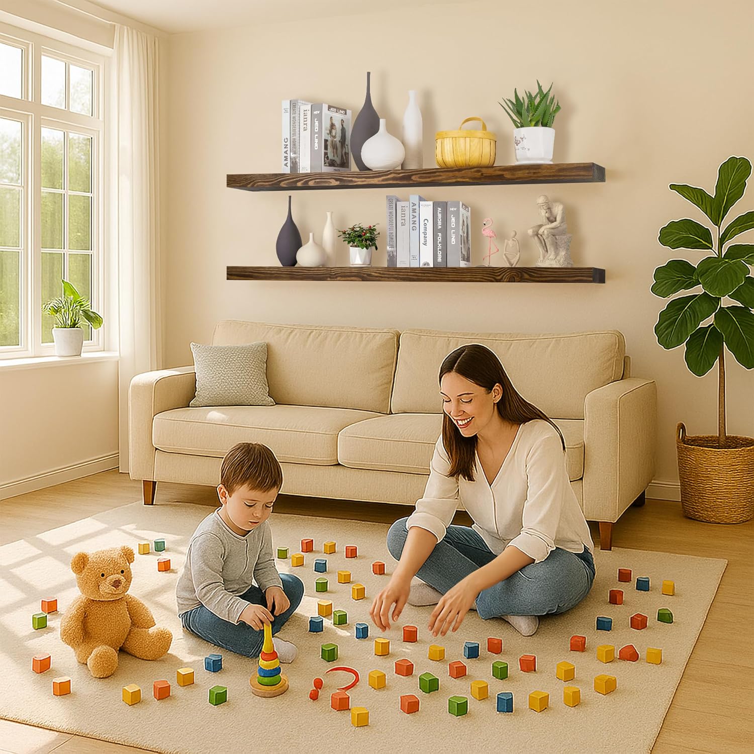 Rustic Floating Shelves 72 inch Long 8 "deep Set of 2, Heavy Duty Wood Wall Mounted Shelves for Bathroom Living Room Kitchen,Book Shelves with Thickened Hidden Bracket- Walnut