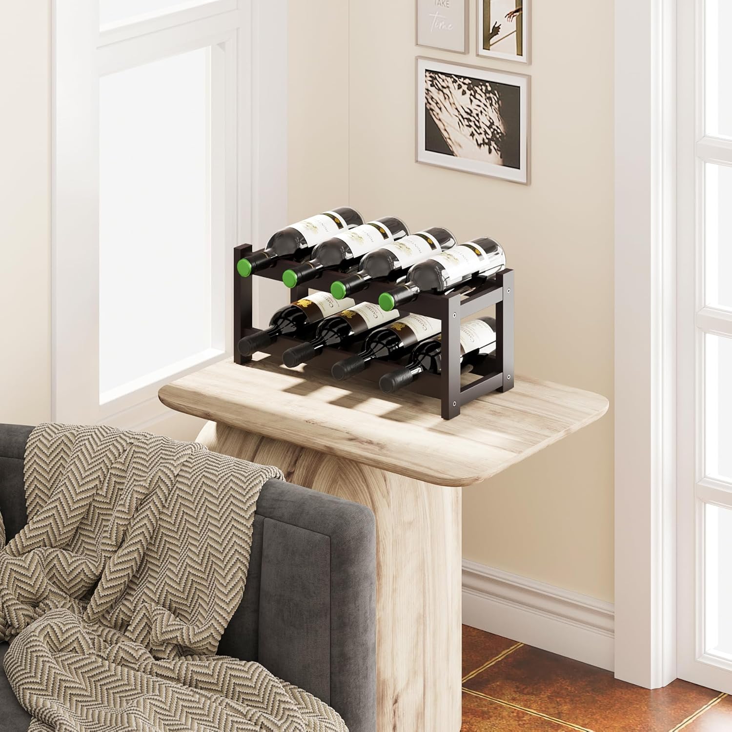 - Overall Dimension (Assembled measurements): 16.85 L x 9.25 W x 7 H; The wine rack holds up to 8 bottles (2 layers & 4 bottles each layer)