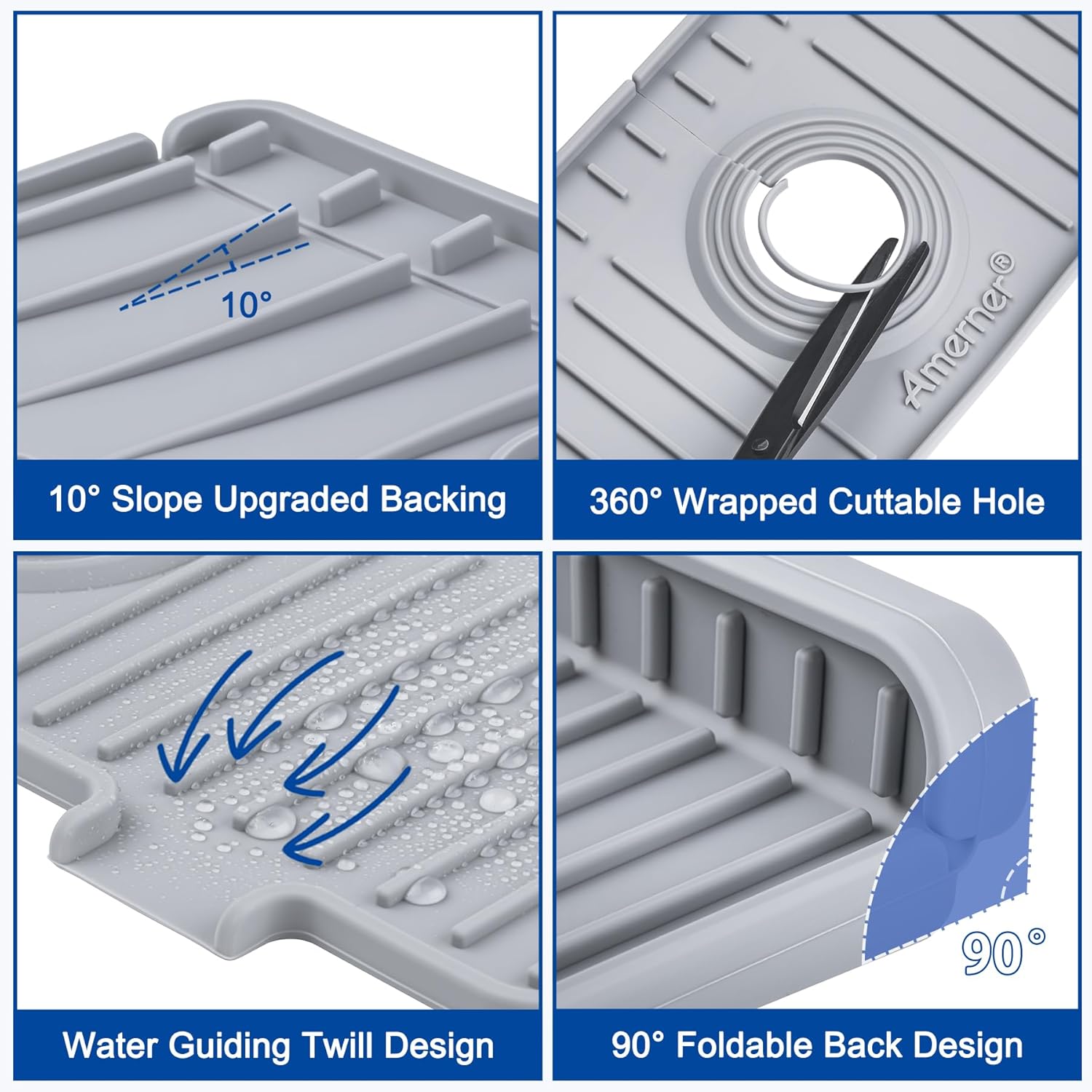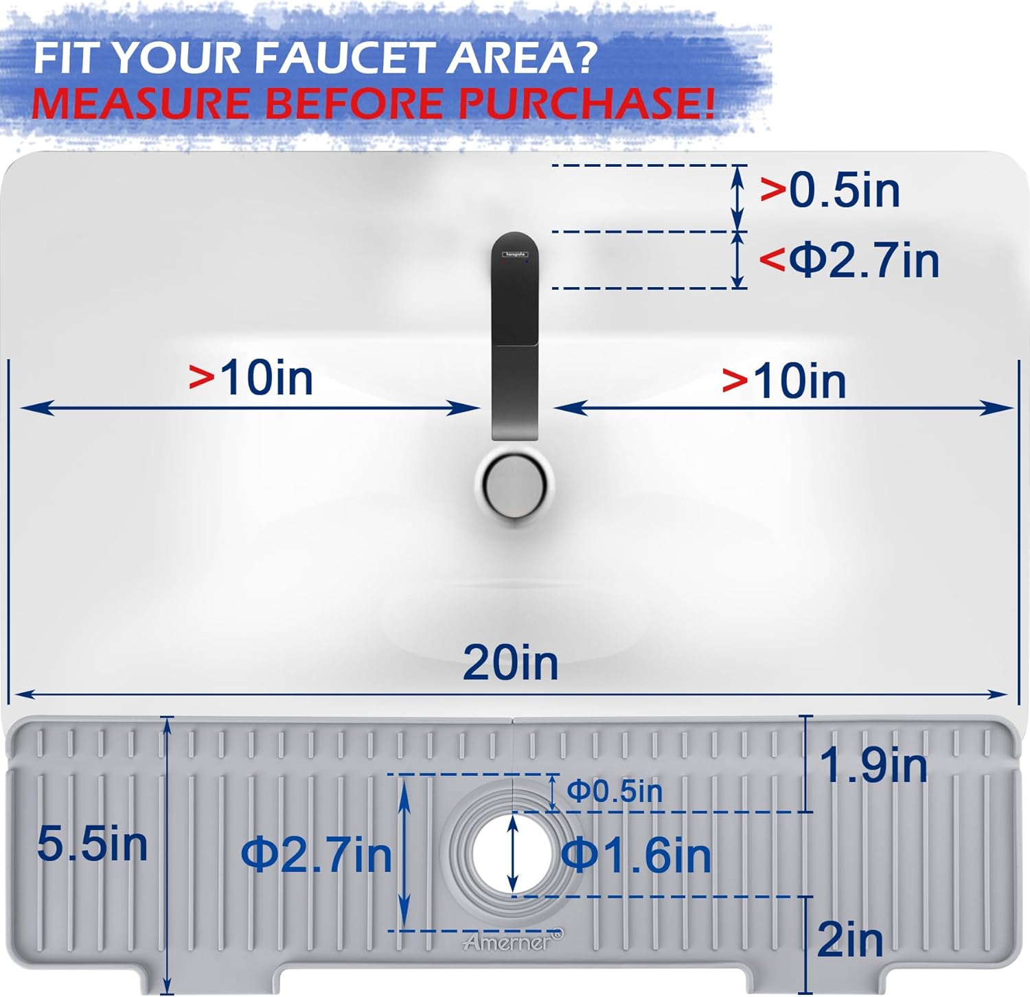 - 【Multiple Usages】Measuring 20 x 5.5 inches, this silicone faucet mat is perfect for the kitchen, bathroom, laundry, or any other area of your home. It brings cleanliness and organization to your faucet area