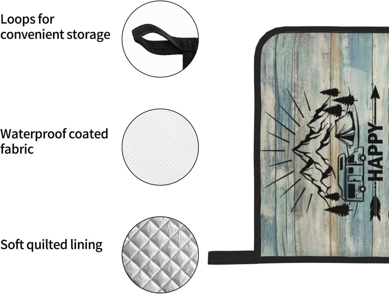 Happy Camper Oven Mitts and Pot Holders Sets of 4,Resistant Hot Pads with Polyester Non-Slip BBQ Gloves for Kitchen,Cooking,Baking,Grilling